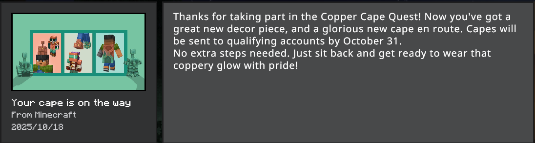 it has been 43 days and I'm yet to receive my copper cape and your terms and conditions state that I would get the copper cape within 30 days after October 20th.