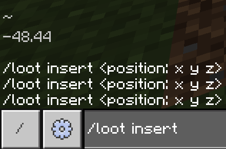 Commands targeting blocks are supposed to suggest integer block coordinates. This works correctly for /setblock, /execute if block (since MCPE-156285 was fixed), /replaceitem block, etc. However it does not work correctly for /loot insert and /loot replace block. Fractional coordinates are suggested instead.