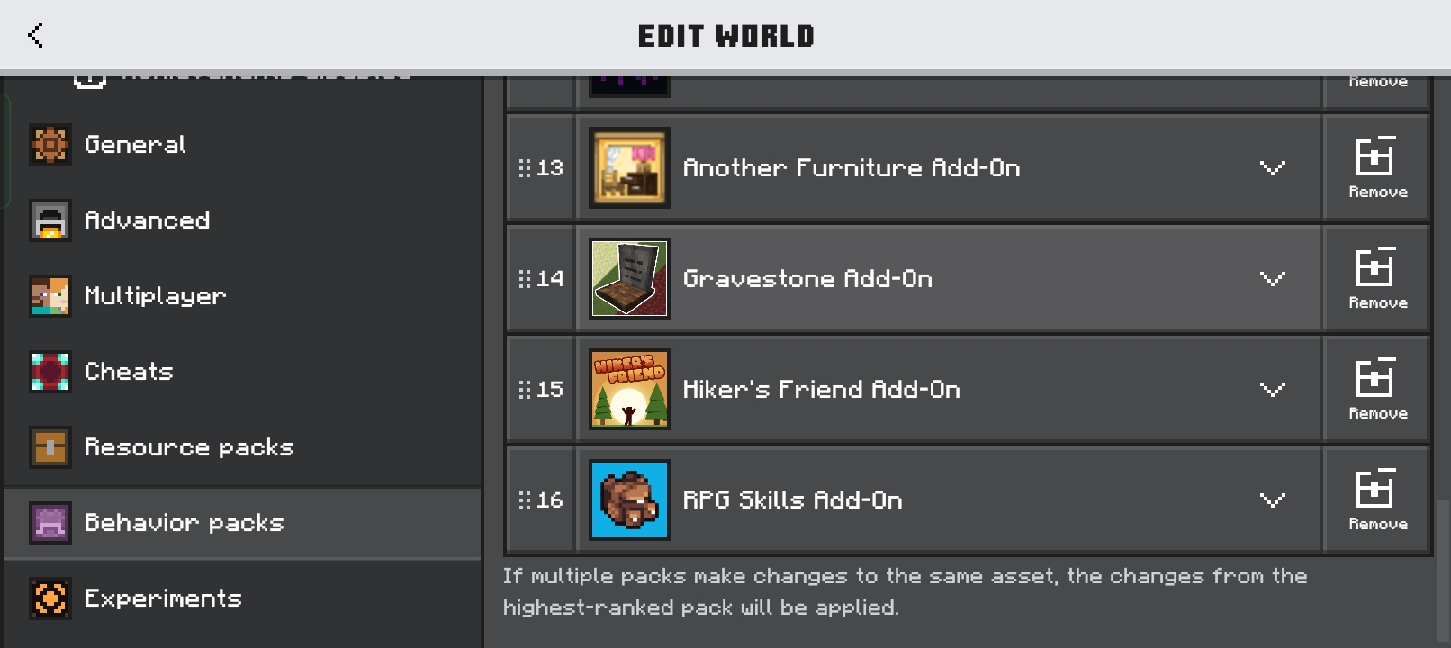 I want to open my world for the new update. But I can’t open it. My concluaion is that one of this addons is making this bug/s.