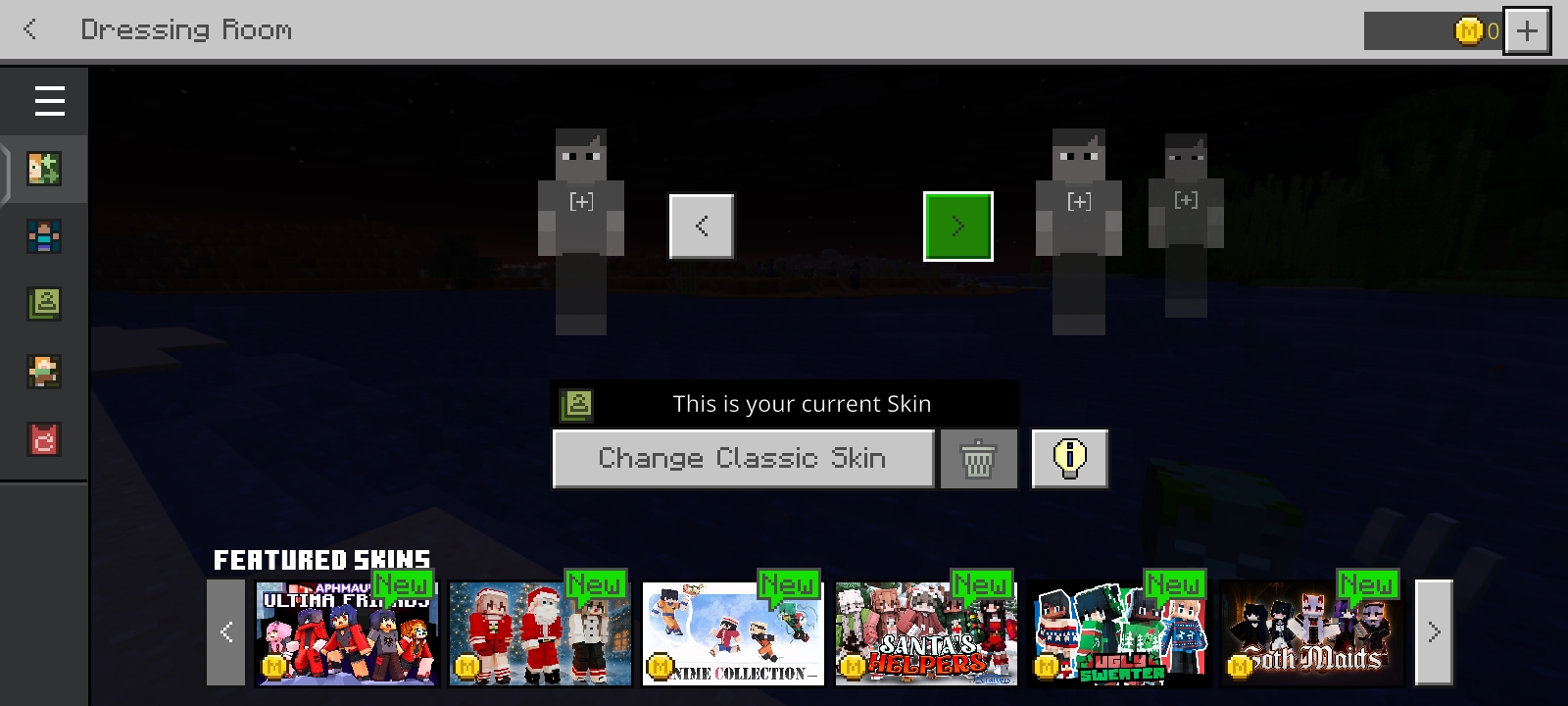 My actual skin never appears, and the Dressing Room shows only these grey dummy models. Because of this, I cannot preview, change, or use my Classic Skin normally. This problem affects the entire Classic Skin section and happens every time I open the Dressing Room.