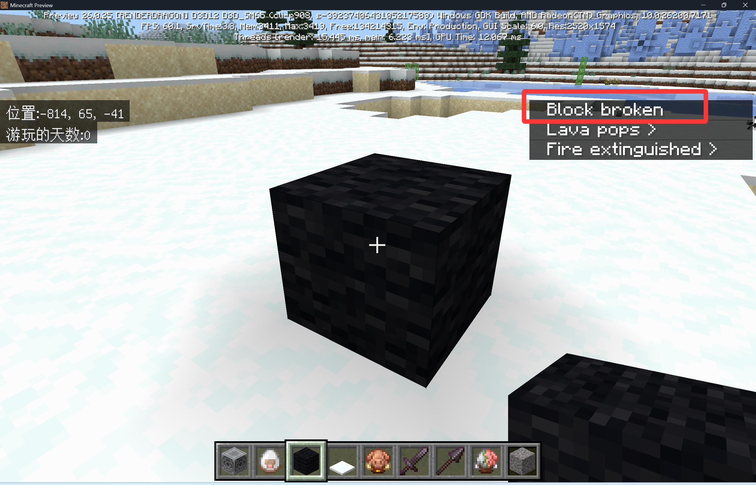 The subtitle of sound reads “block broken“, but it should be “block placed“