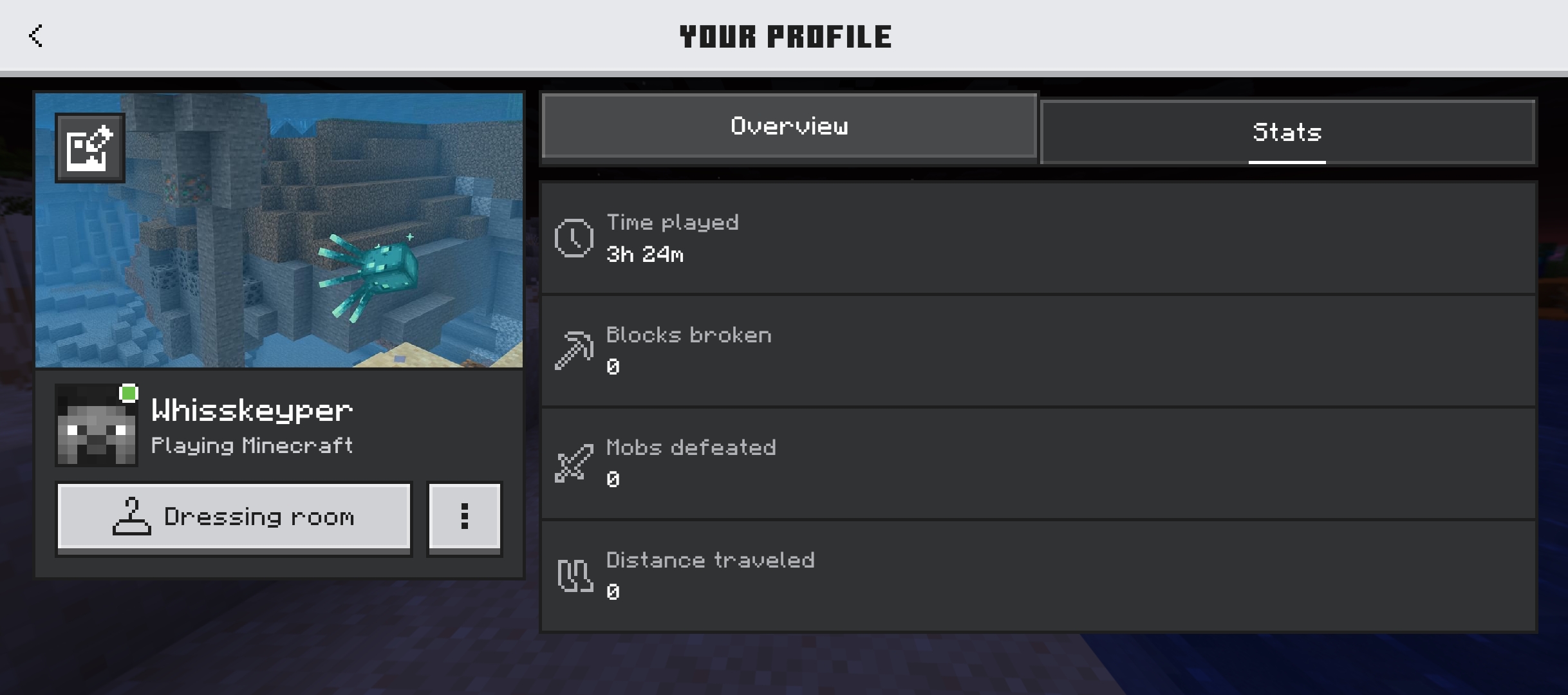 The “Time played” stat showing negative hours is tracked at MCPE-230285.