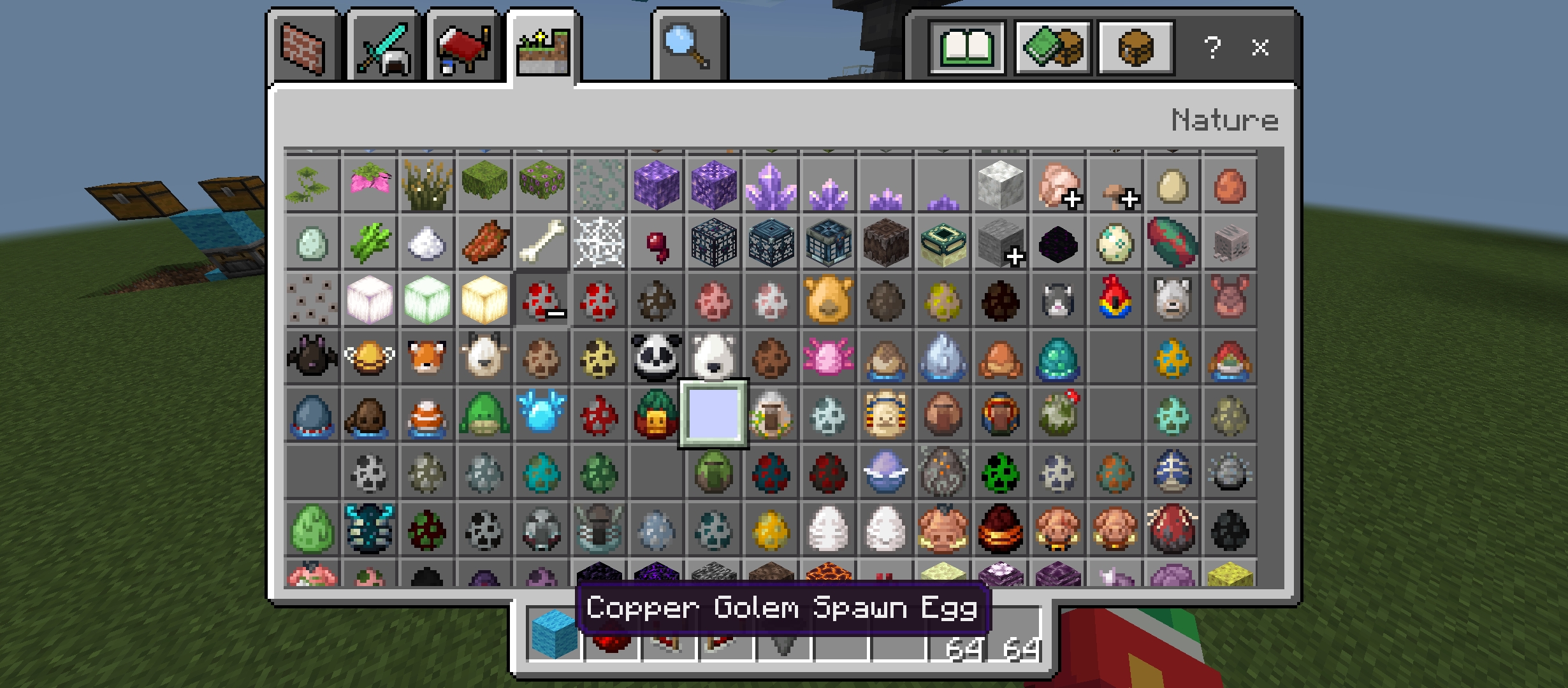 Spawn eggs have the incorrect texture (old texture), like the chicken, cow, pig, sheep, and more, some spawn eggs have no textures like the new Nautilus and Zombie Nautilus, Camel Husk and parch spawn eggs. Not just the spawn eggs that have no texture but also the actual mobs have also no texture making it invisible. The copper golem mob and spawn egg also have this issue, including the copper golem statues.