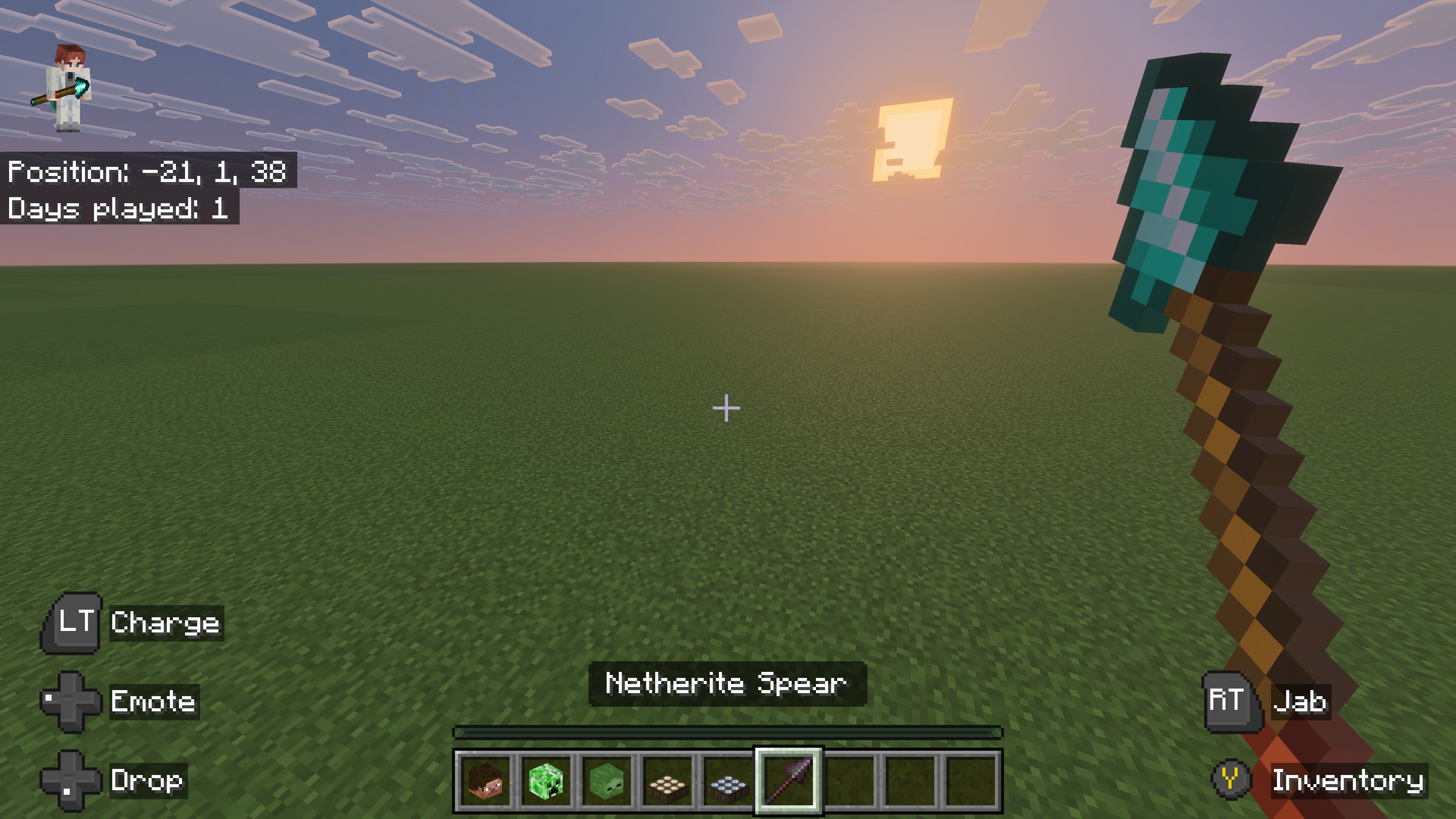While holding a Netherite spear it appears as a diamond one with the same texture. It has the same capabilities of a Netherite spear but a different texture