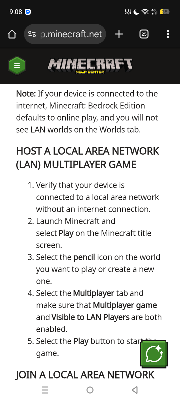 Minecraft lan multiplayer not working official Help.minecraft.net made a article named Play Minecraft: Bedrock Edition on a Local Area Network (LAN) and it said that you can play multiplayer even without internet and I tested it doesn't work even if I deleted it and reinstall it still doesn't work or log in the both phones with accounts on Microsoft still doesn't so Mojang scammed us