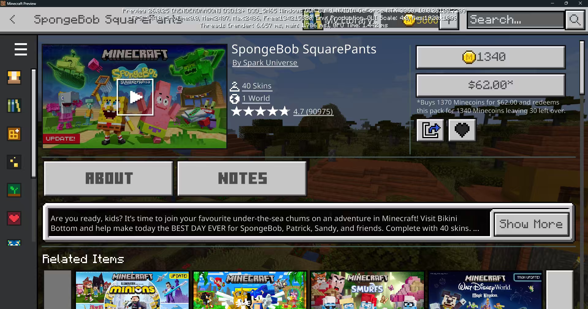 After setting the language of Minecraft Bedrock Edition to Chinese or English, some product pages in the Marketplace function display content as ‘?’ or garbled English translations.