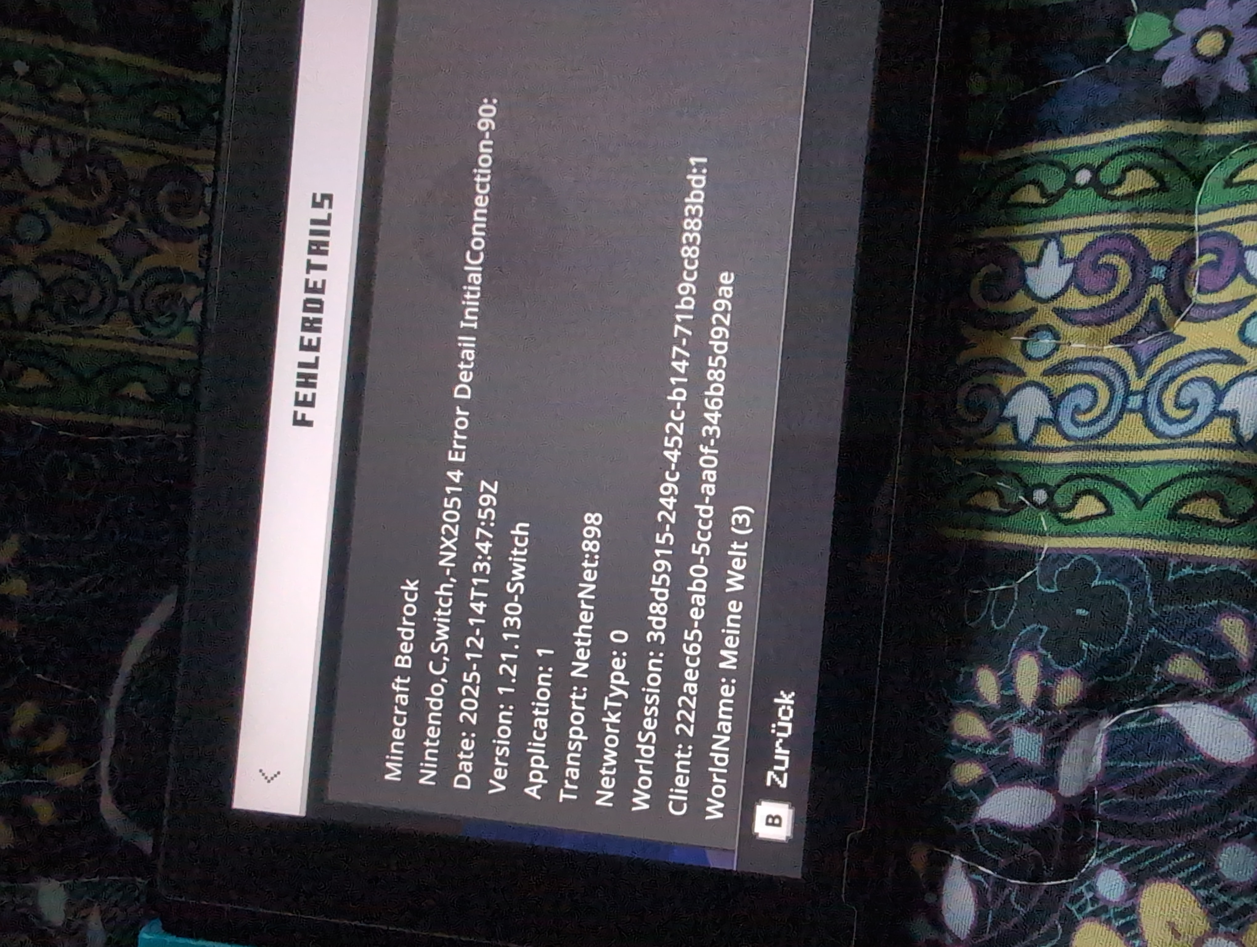 As soon as my son logs in with his Microsoft account, regardless of whether it's on a Switch or an Android tablet in Minecraft, the following error code appears, and he can no longer access any world. The same thing happens via the Switch account, provided an online connection exists.