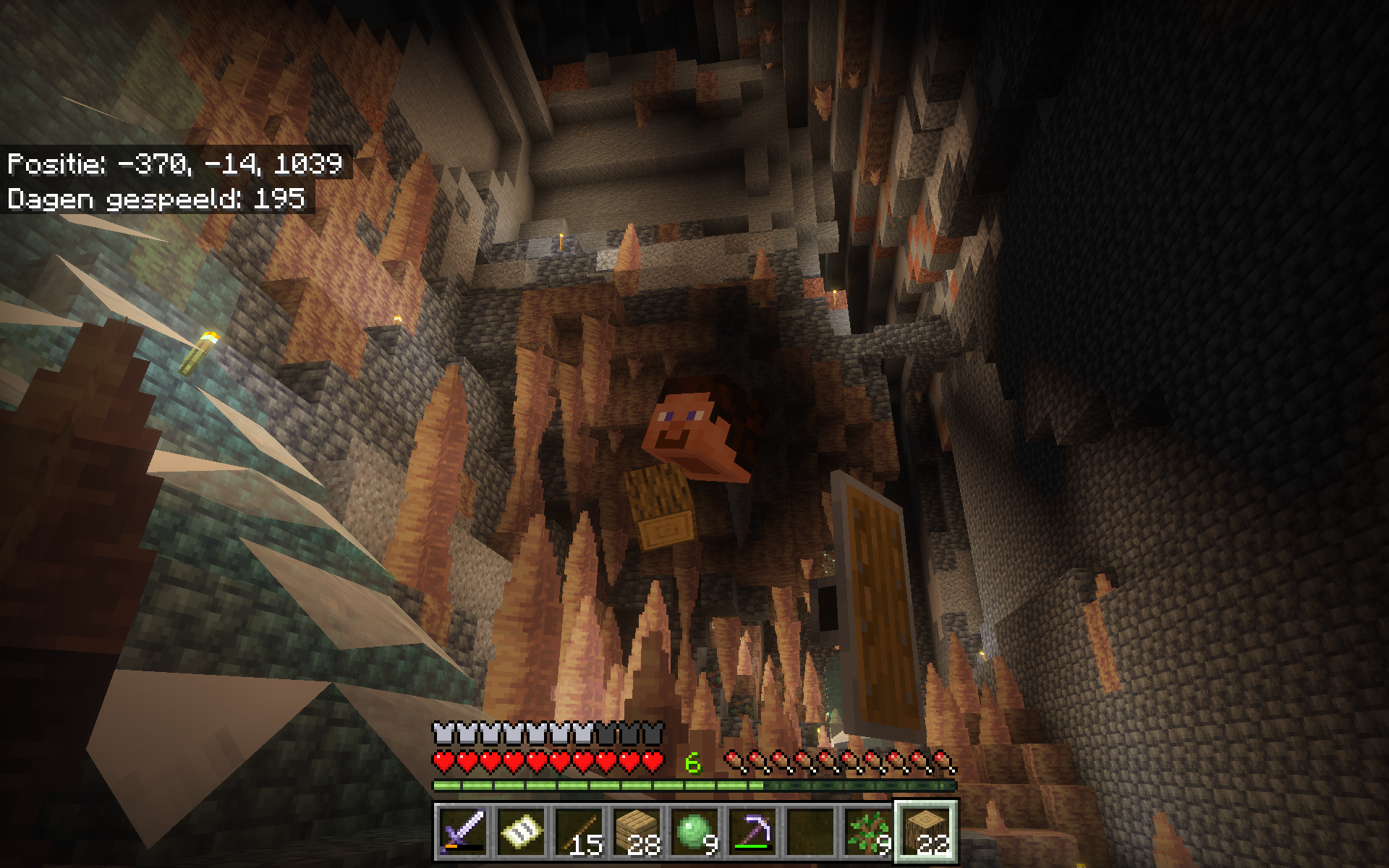 My head is floating and the item in my pickaxe/wood is under my head and my shield is in first person like covering the left side 40%