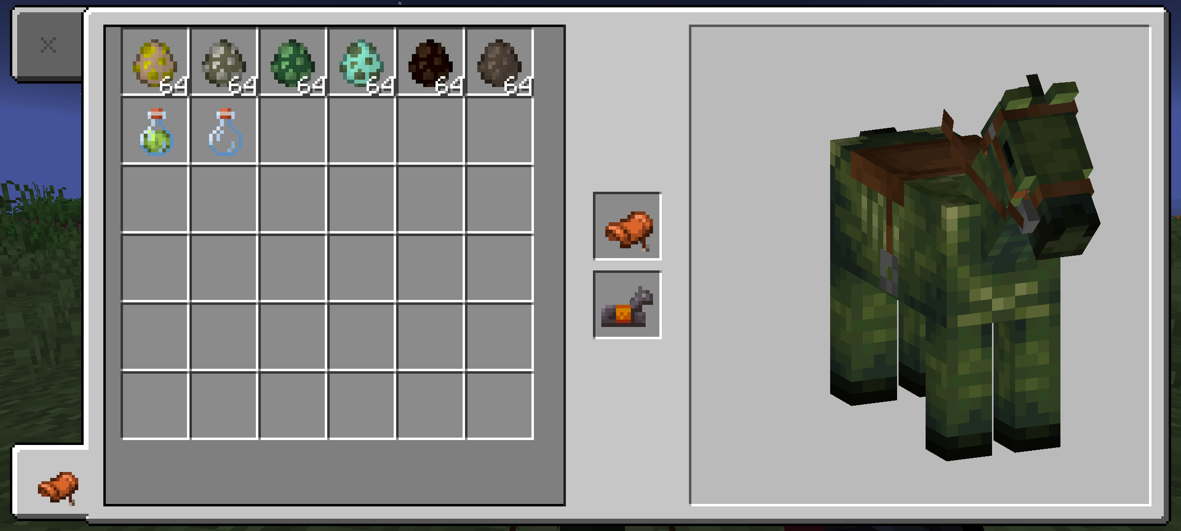 Some spawn eggs have the old spotted variant image instead of the new ones, all the eggs with this issue are: Horse Spawn Egg, Donkey Spawn Egg, Mule Spawn Egg, Skeleton Horse Spawn Egg, Zombie Horse Spawn Egg, And Drowned Spawn Egg.