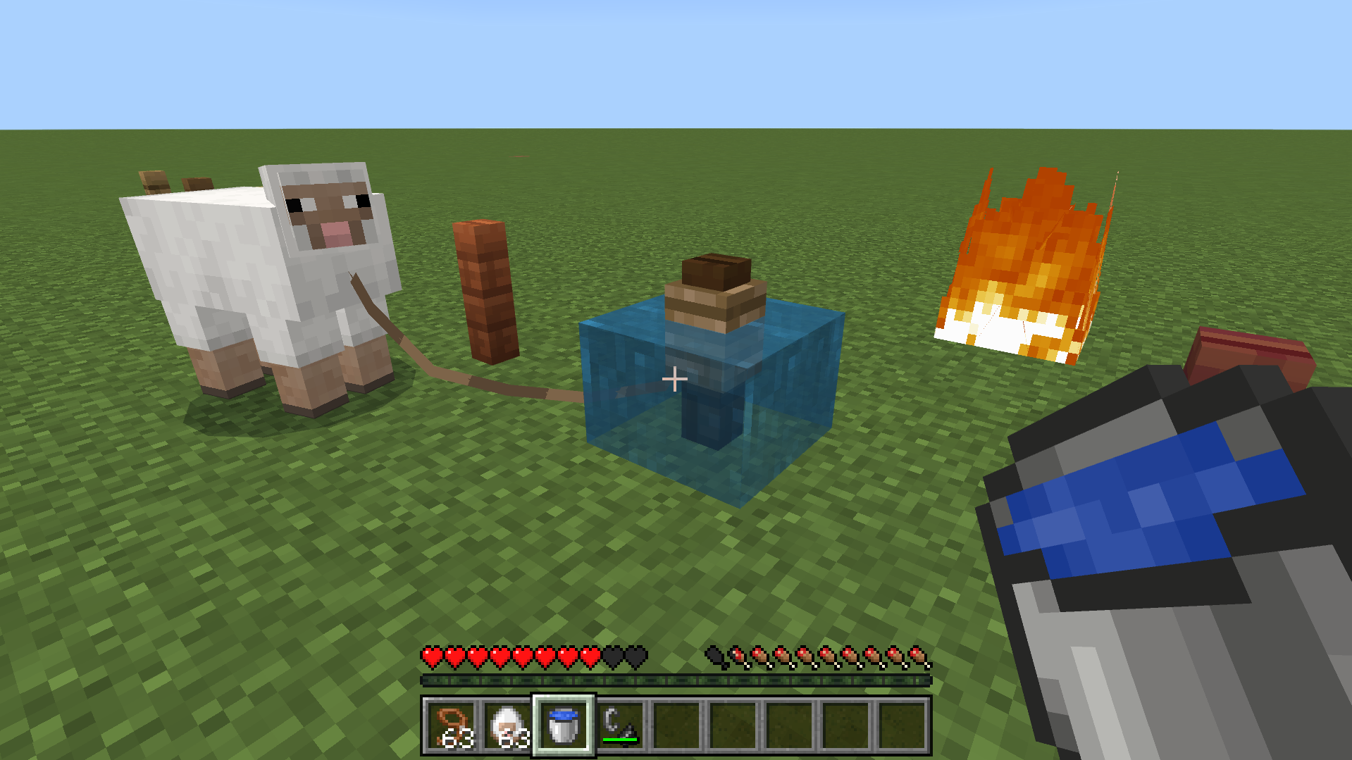 When leading a mob onto a fence whilst holding a water bucket (in survival mode), a non flowing water source block will appear whilst not depleting your water bucket, which still functions regularly. This waterlogs the fence. It acts like a ghost block, as it does not put you out when on fire, and when the fence is broken the water disappears. However, when walking through it, it still has the viscosity of water, slowing player movement. Works on all types of fences, and when leading all mobs.