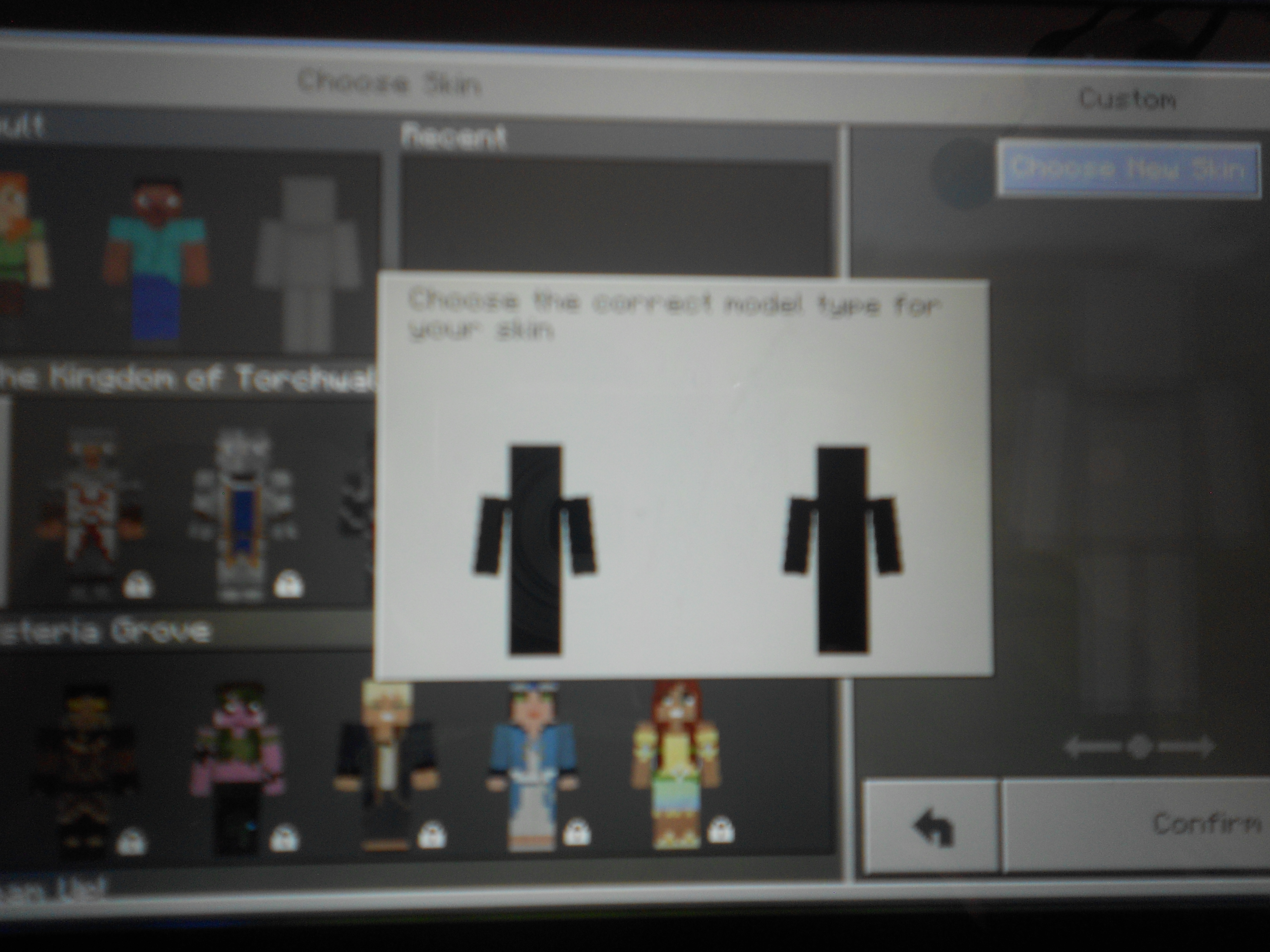 If you are using a valid skin and it still doesn't work, try reinstalling the game, and clearing the app data and cache. (Be sure to backup any data you don't want to lose, such as your world saves)