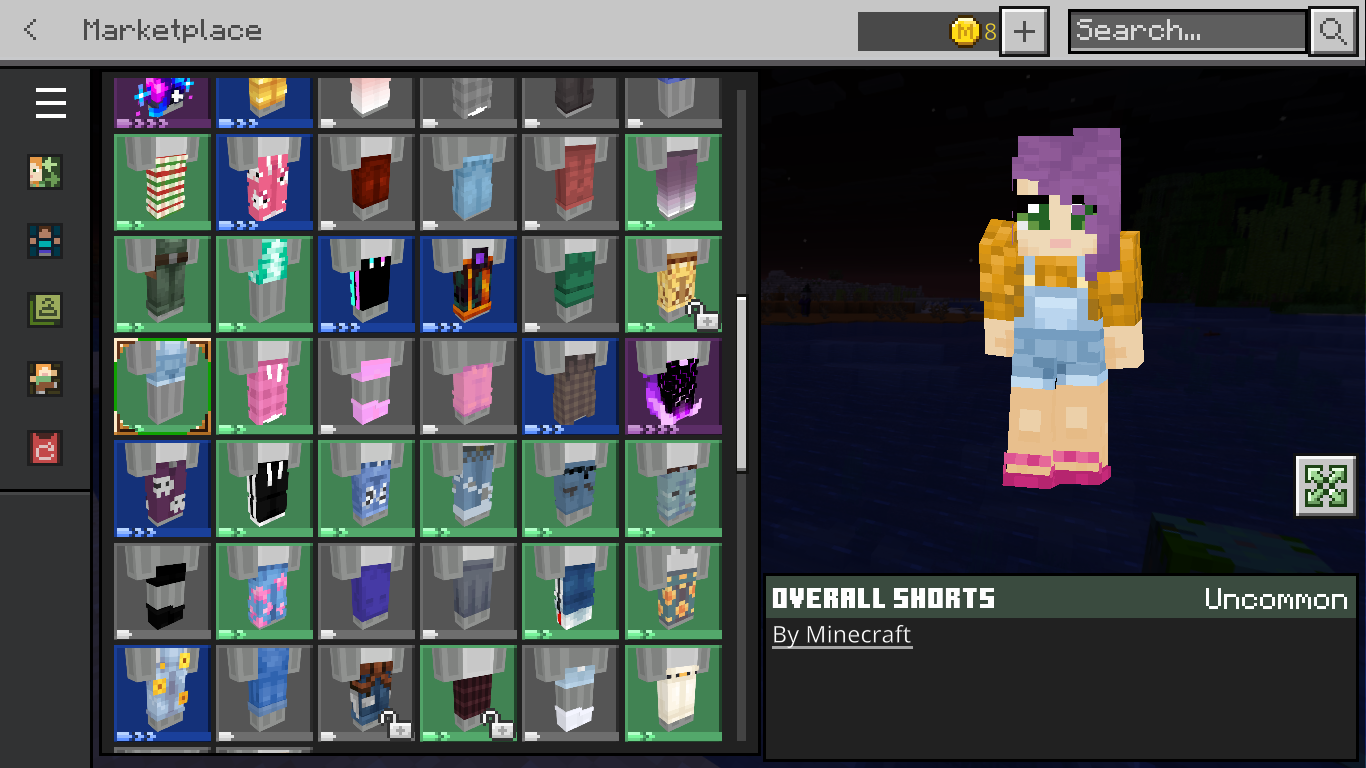 Okay, so I have been noticing a noticeable visual bug with the Overall shorts after you have equipped them and then after whenever you close out of Minecraft and reopen the game, you will notice this whenever your character with selected Overall Shorts loads on screen. You could try equipping something else and then back to it to get it to look how it’s supposed to, but the moment that you exit the game and re-enter is when this visual bug once more. This is only an issue with the basic Overall Shorts Btw. I don’t know if anyone else has experienced this, but I have for a while and am now reporting it.