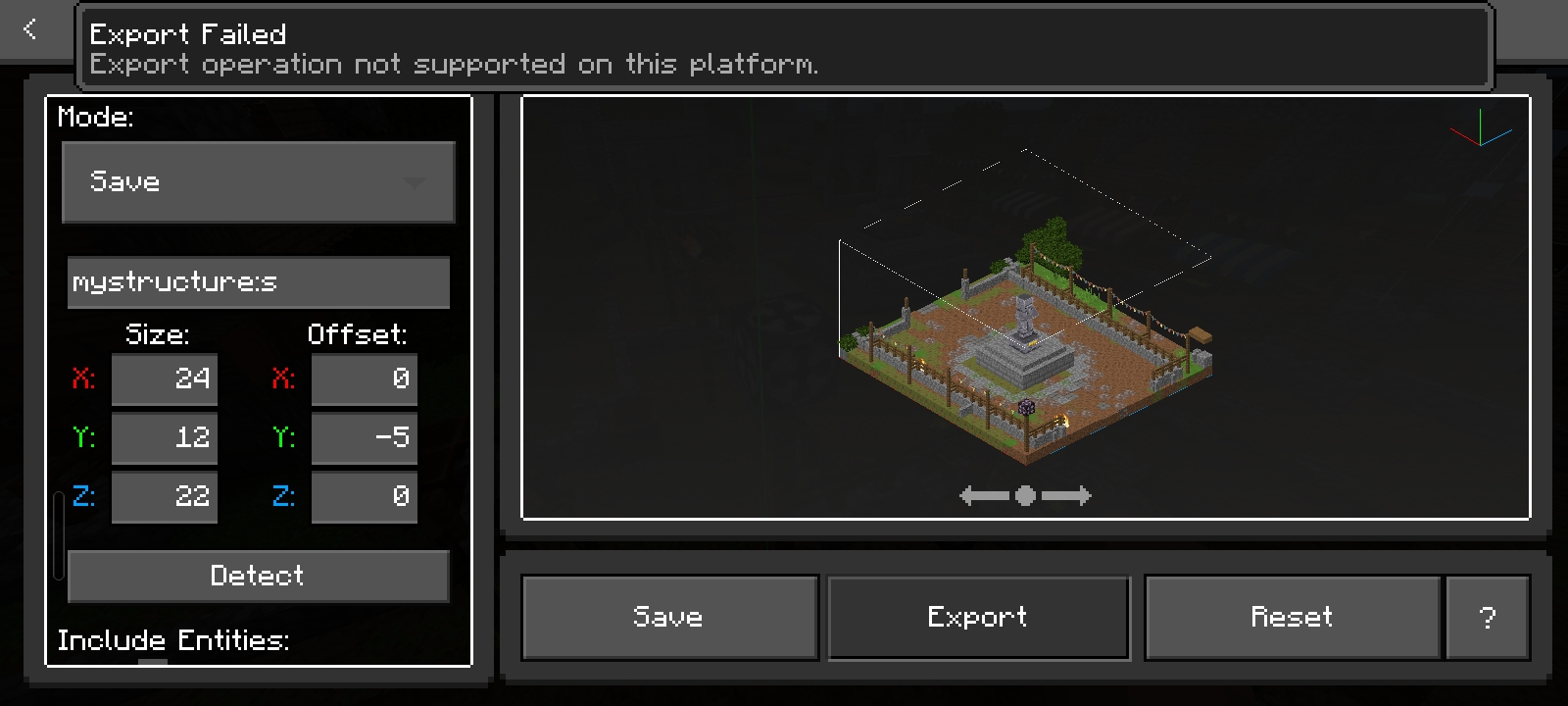 I'm a mobile addon creator, i always used a resource pack to enable the export button inside structure blocks, it used to work fine, I could export my structures normally, but now it says this feature is not supported on my platform, please fix this, I need a way to export my structures.