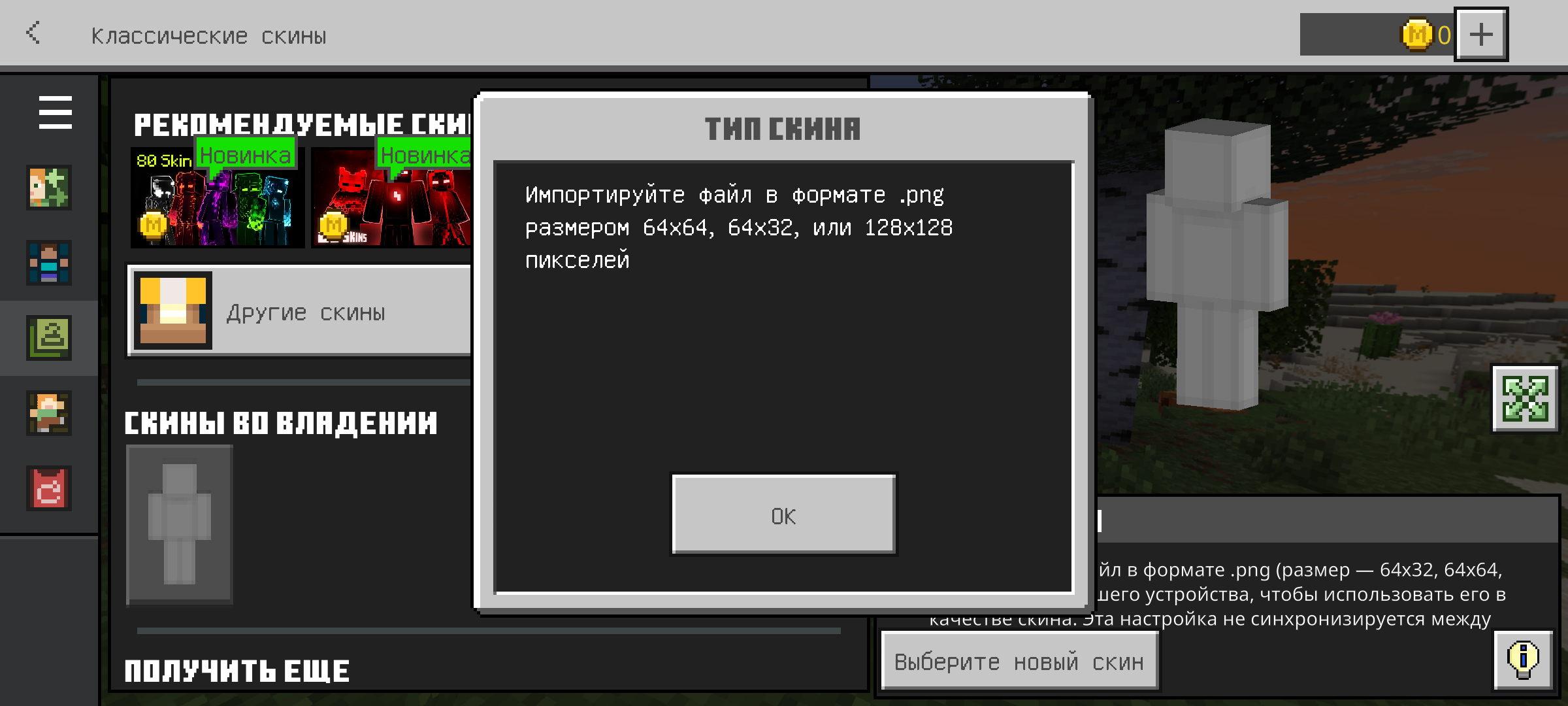 Hello Mojang! I'd like to let you know that skin importing has stopped working properly. I found a good skin, copied it in the required resolutions (128 x 128), and even tried others, such as 64 x 64. and 64 x 32, but nothing worked! My friend has the same problem, even though she has the newest version. Please fix it. Thanks for your attention.