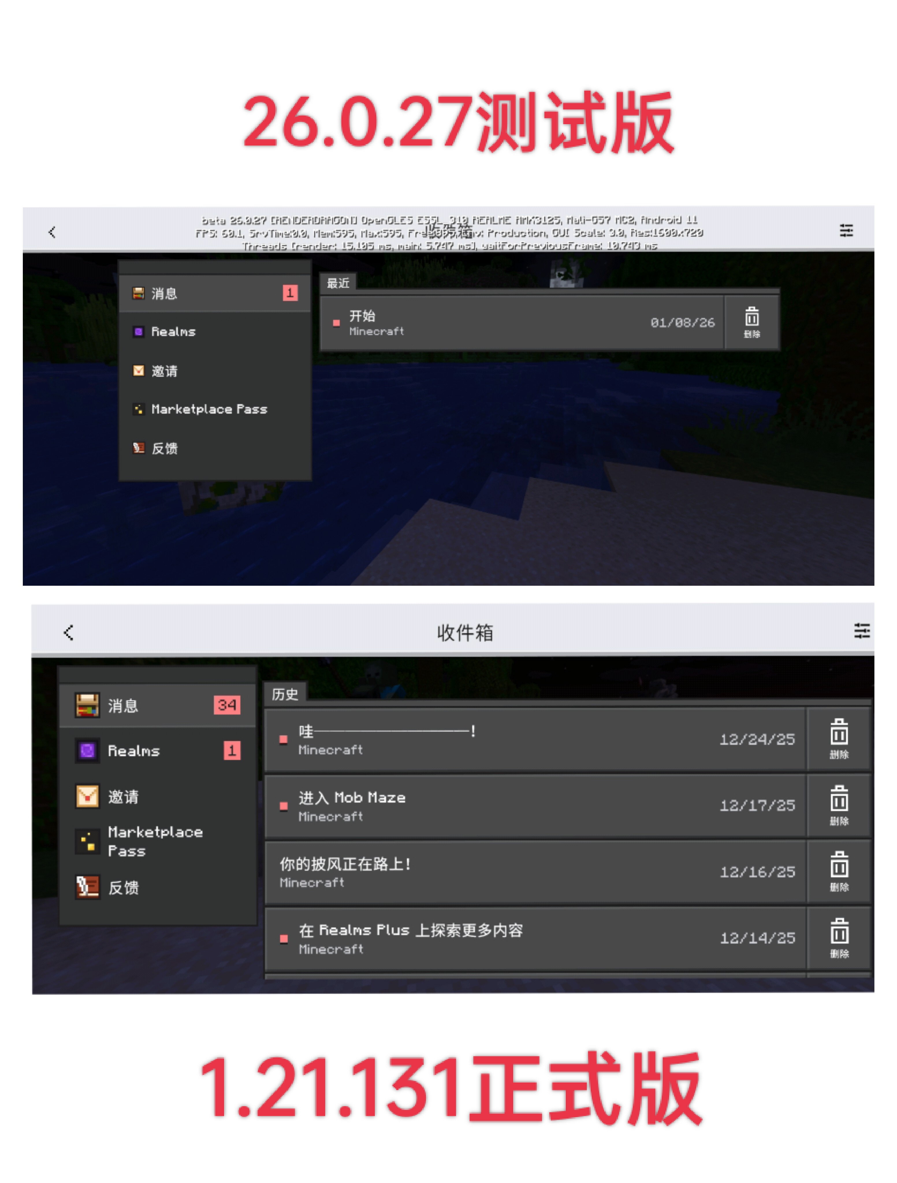 The inbox layout design of the 26.0.27 beta version is obviously not as convenient and aesthetically pleasing as the 1.21.131 official version.