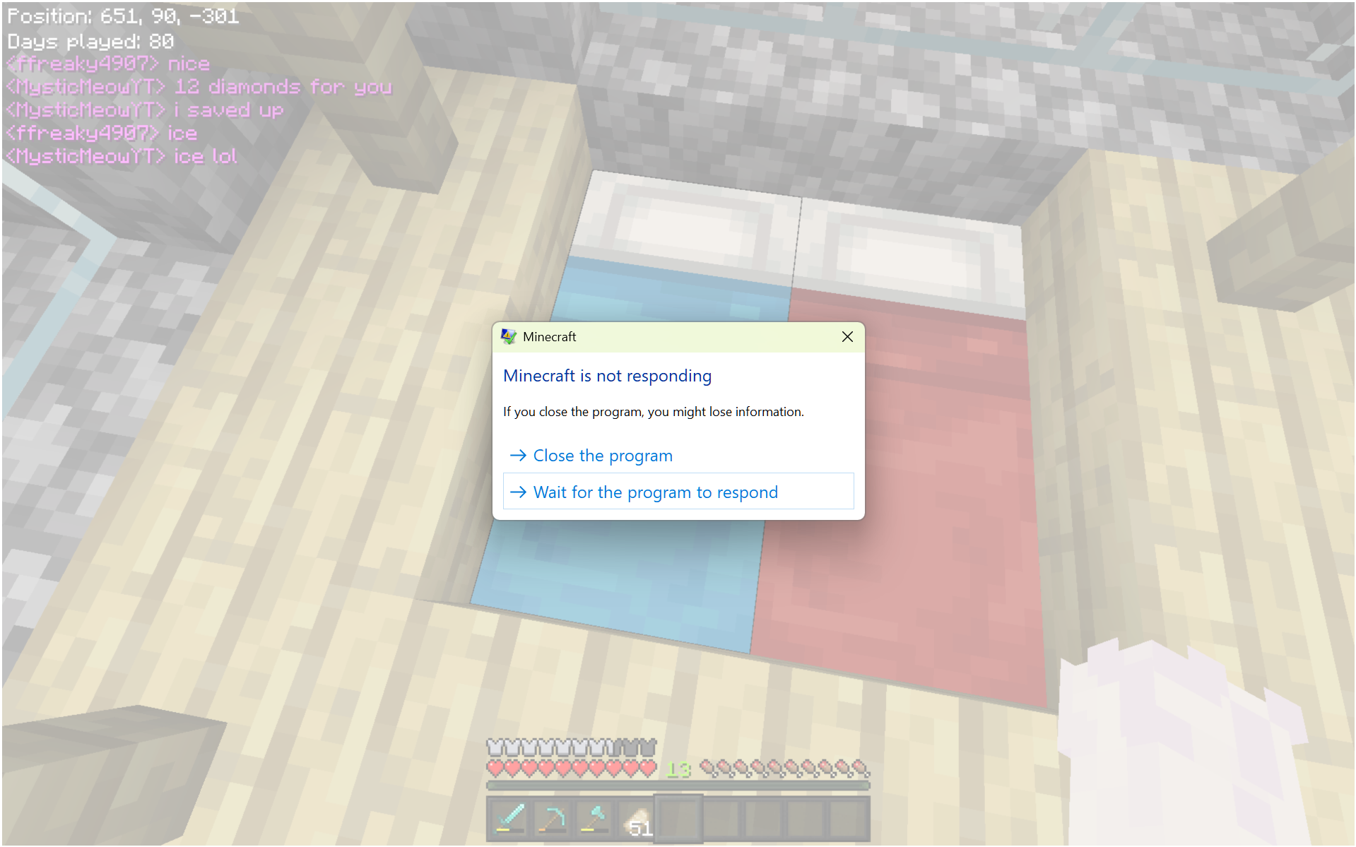 yes, it is on a LAN world and this is the screenshot I took when the game froze