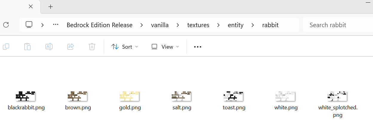 New rabbit textures should be placed in a separate rabbit_v2 folder. This is the same notation used for the saddle, bat, pig, chicken, cow, and magma cube.