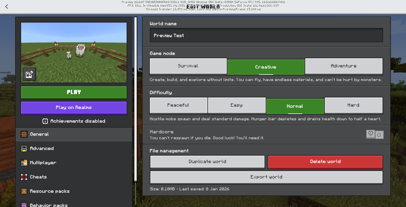 When the UI scale is set to small, the icons inside the Ore UI screen become invisible.
