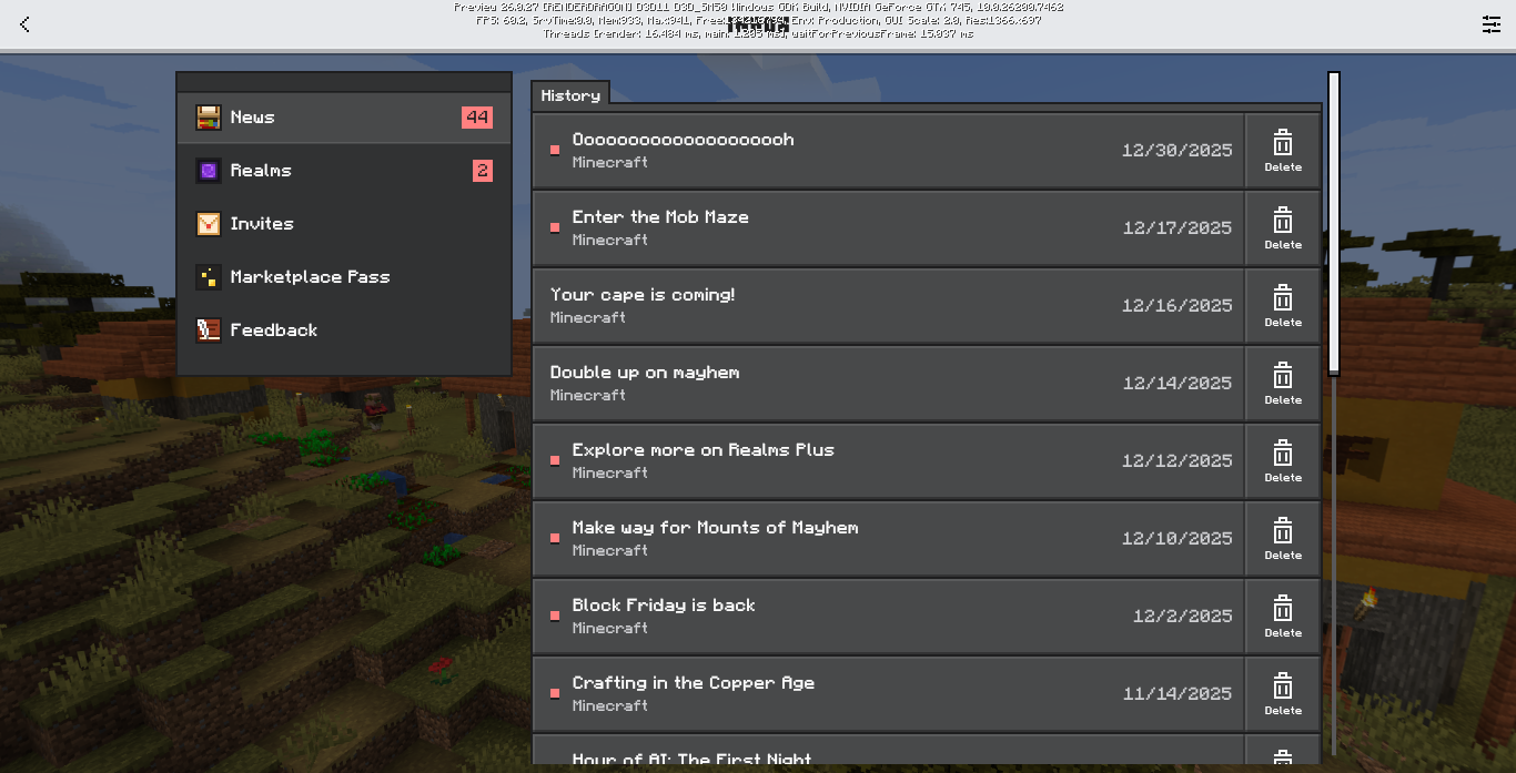 Go back to main menu, then open play screen