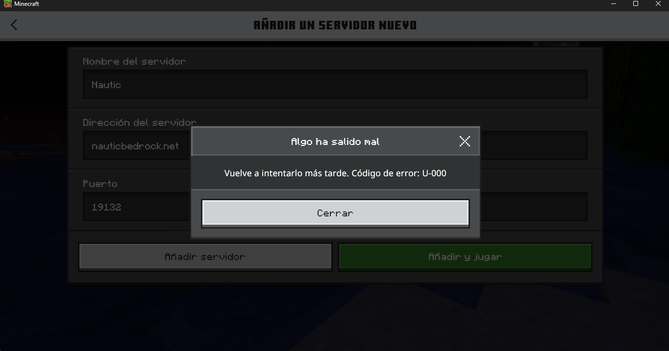 When trying to add a custom server from the Servers → Add Server menu, the game displays an error message and does not allow the server to be saved.