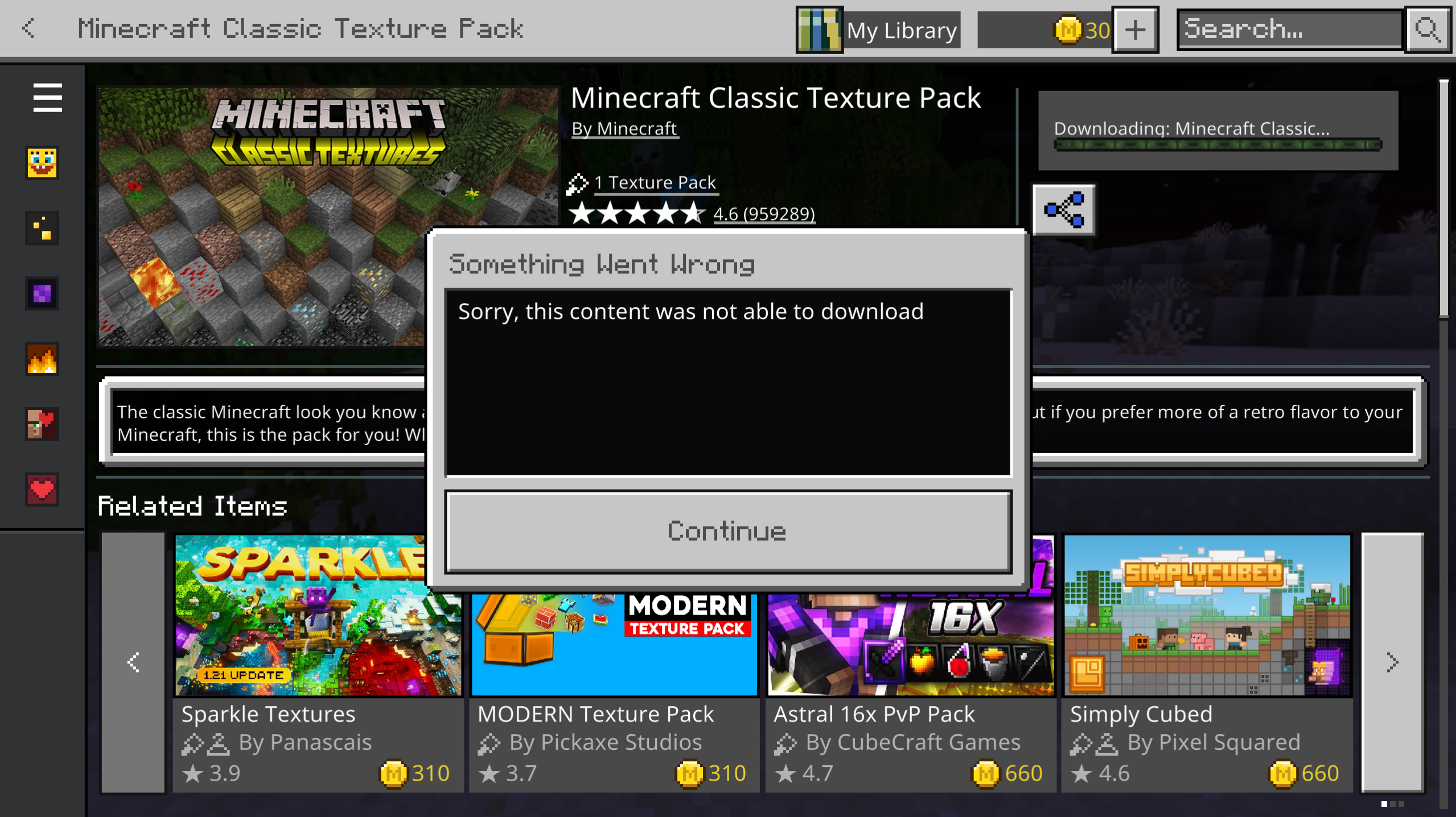 Search for the Minecraft Classic Texture Pack