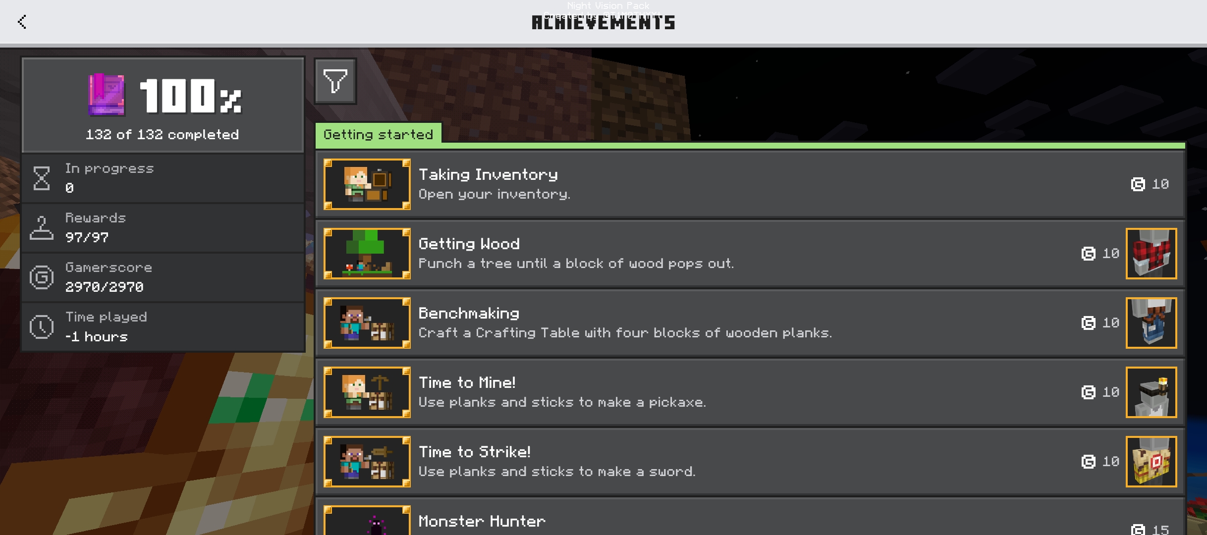 whenever I open achievements it doesn't add up what i just did for example i kill thousands of mobs it doesn't count thus when I open achievements it shows -1 time play