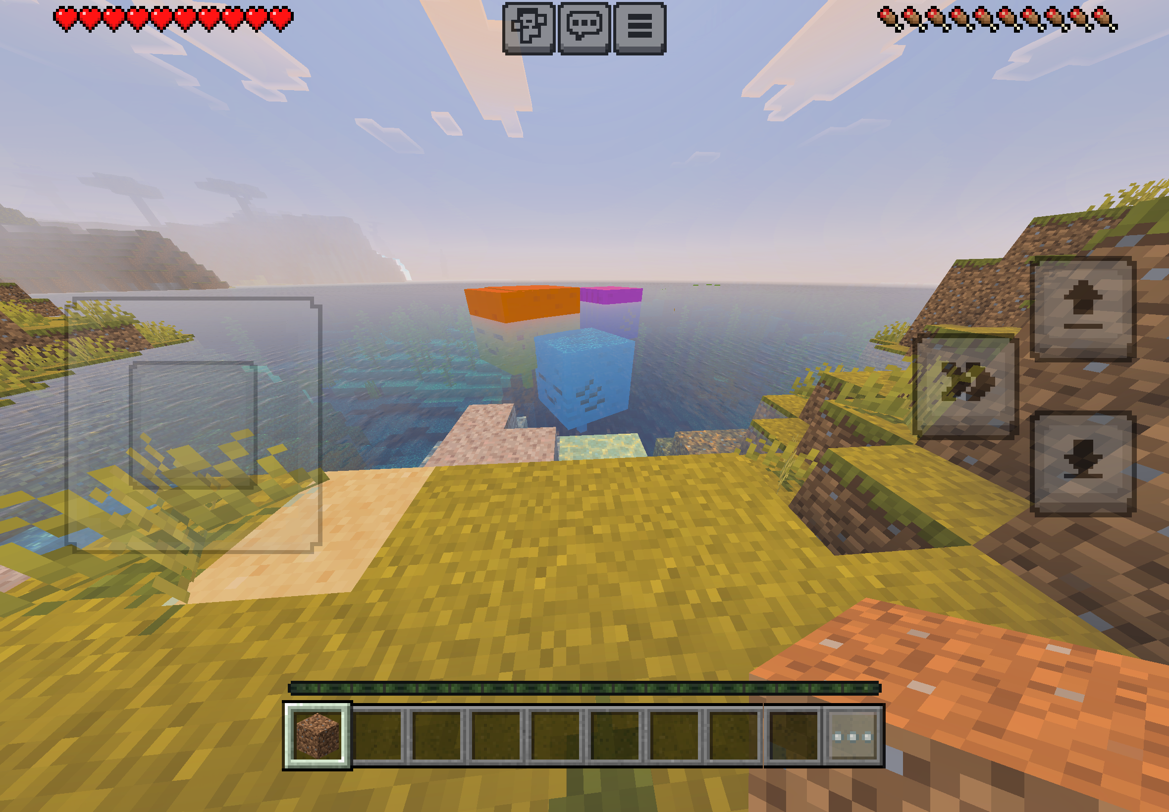Multiple fish appear as Ghasts in the Overworld ocean. They appear with different colors and happy facial textures.