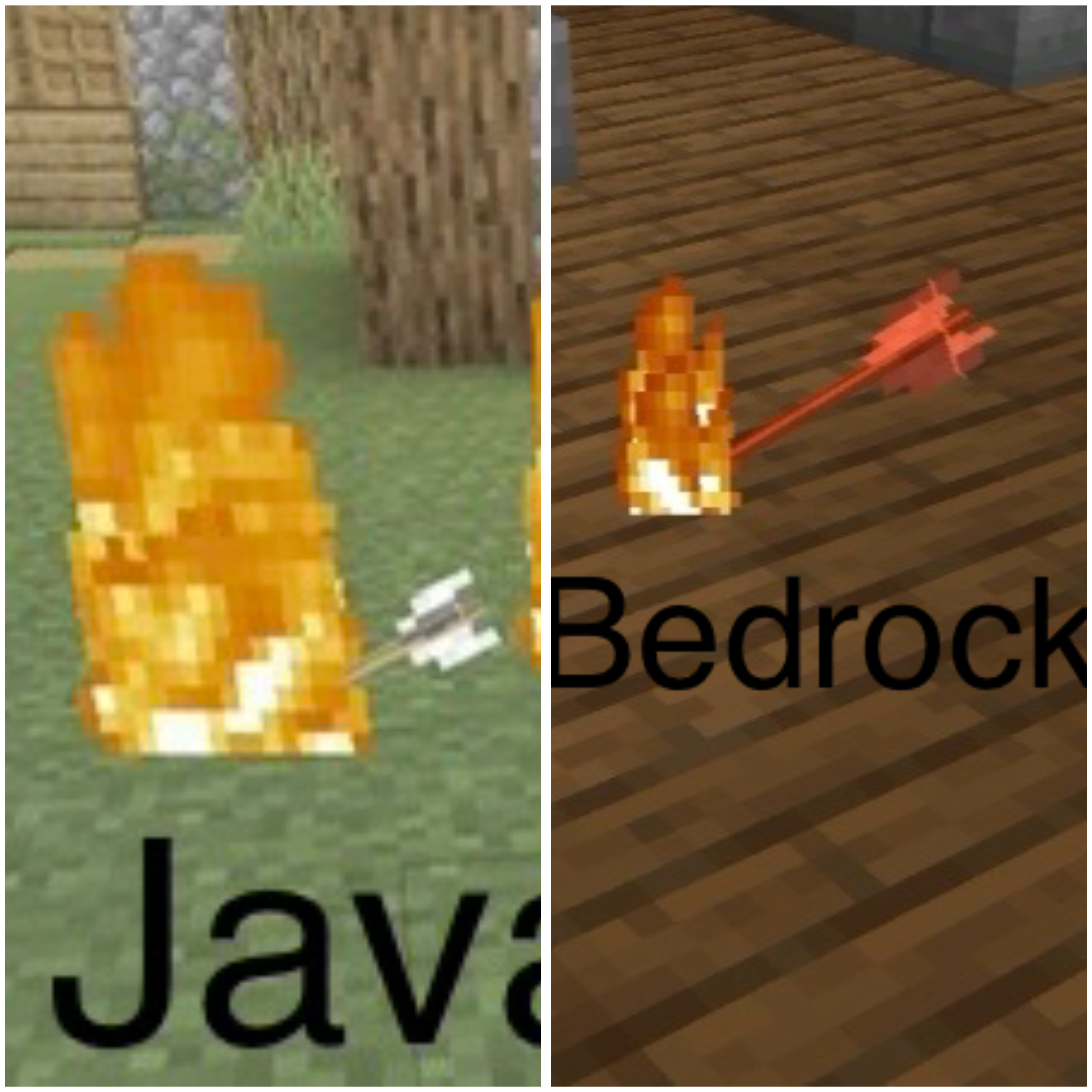 When a player shoots a flaming arrow, their model turns red, and the fire model surrounding the arrow is smaller and doesn't match Java.