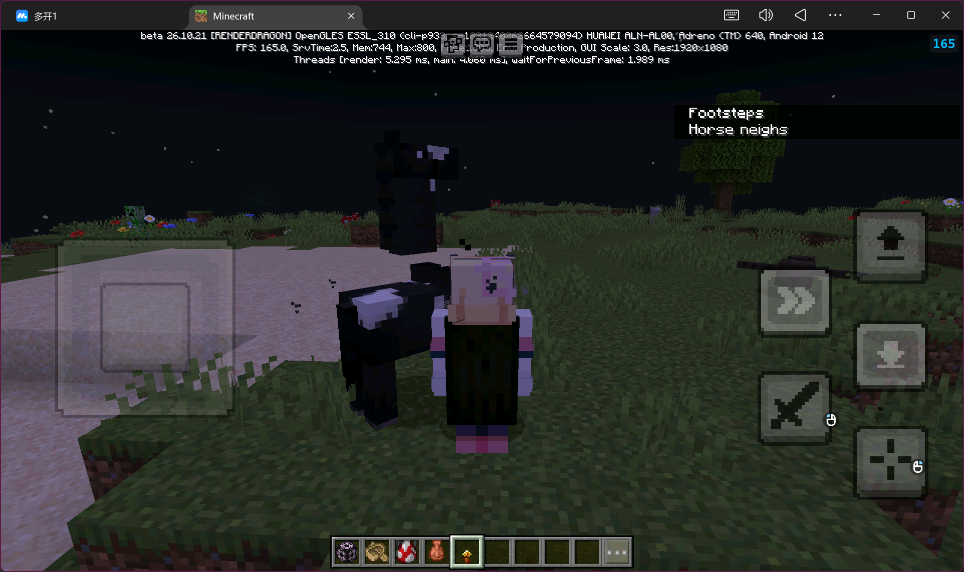 When you enter the world and summon mobs, you can see that all entities—including players, mobs (zombie villagers, endermen, pigs, horses, villagers), and even the player character—exhibit severely abnormal movements. Specifically: