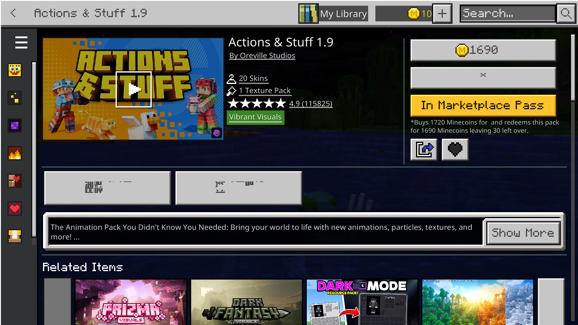 There is garbled code in Ore UI in Minecraft. Such as ‘'ABOUT’' button in Marketplace, or the name of the character of the classic skin.