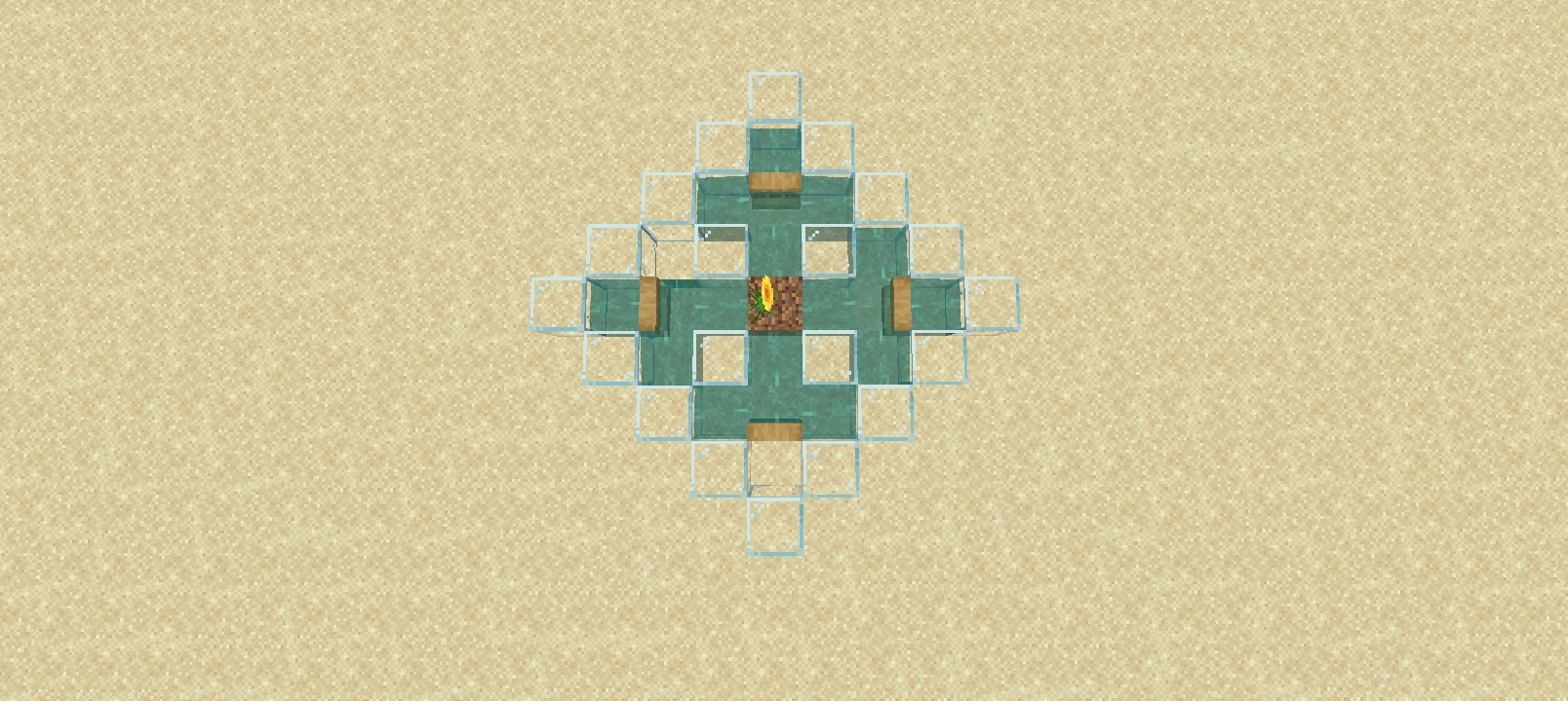 * When facing East, the block is "bugged": water is blocked by a side that should be open, while the actual back wall allows water to pass through.