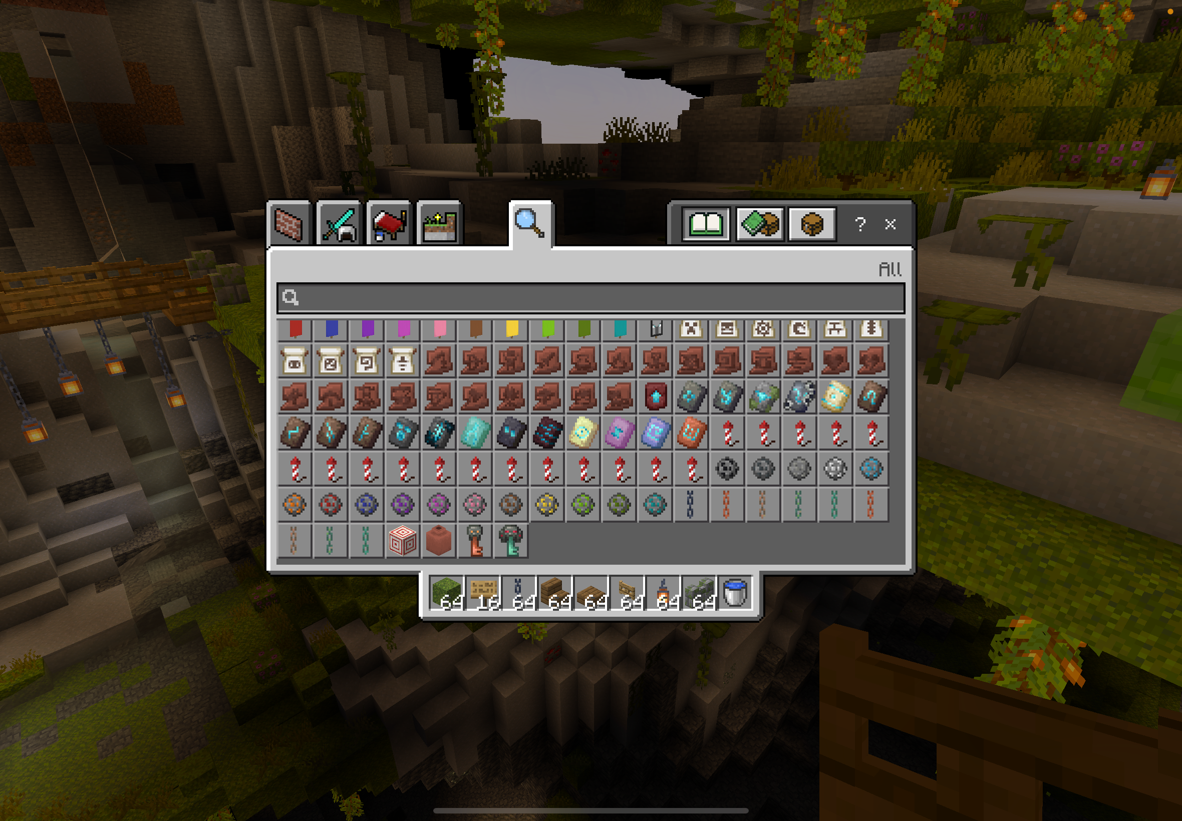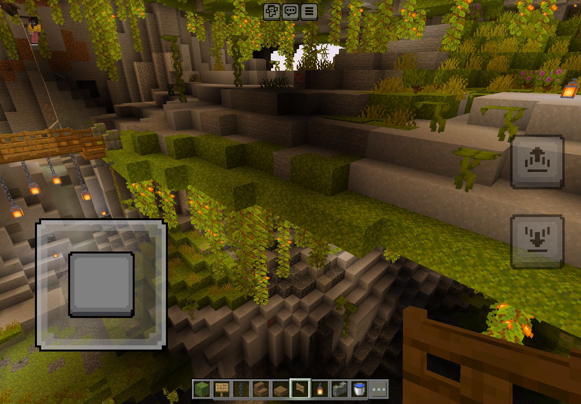 Just want to show how small it is on screen in a world on mobile you can see just how much smaller they are. You practically having to use youβre pinky to press every item and how small your item bar is even the games sitting buttons on the top of the screen. You can see the big space you have around the actual block menu.