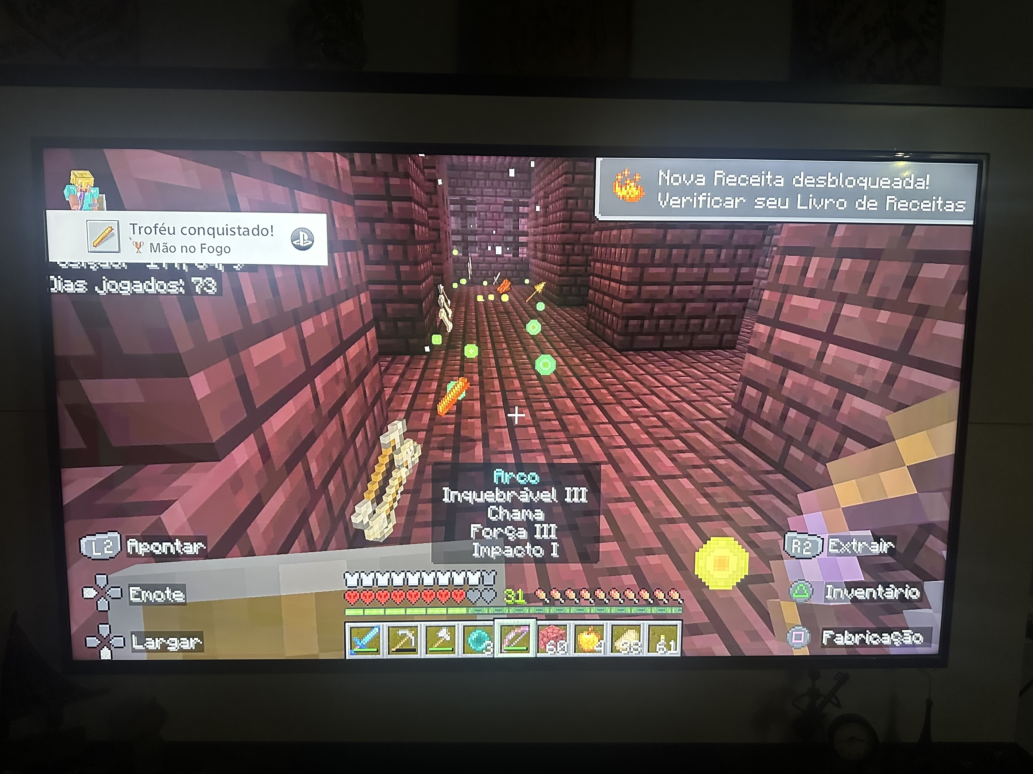 I was playing in my Hardcore world and had just earned the achievement for obtaining a Blaze Rod. When the PlayStation notification appeared, I pressed the PS button to check the achievement/trophy details. I believed the game was paused, but when I returned to Minecraft, my character was dead.