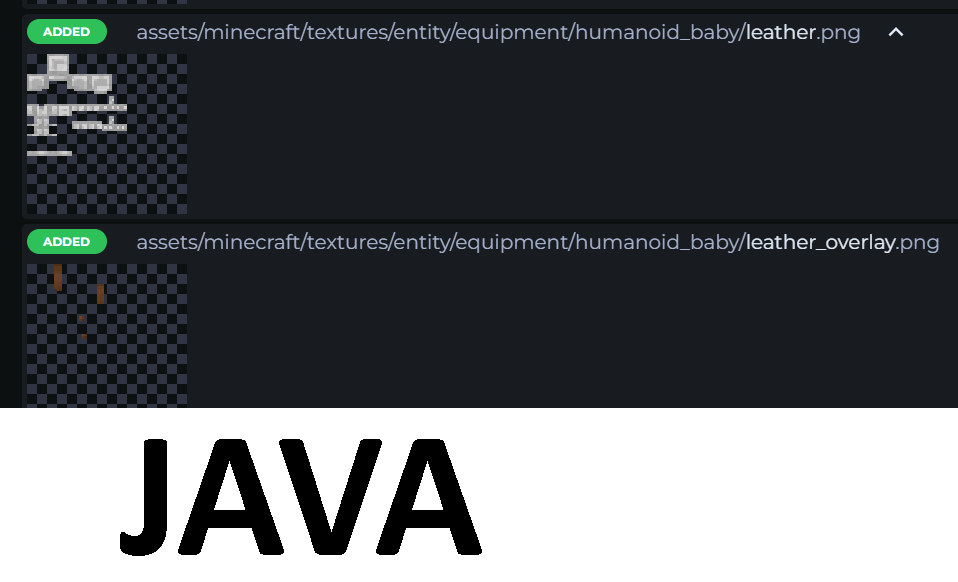 In this week’s preview, Mojang introduced new models for babies hostile entities with a different texture for armors too. However, the leather one lacks from “leather_overlay” that is used for certains part of the armor that is not meant to be tinted.