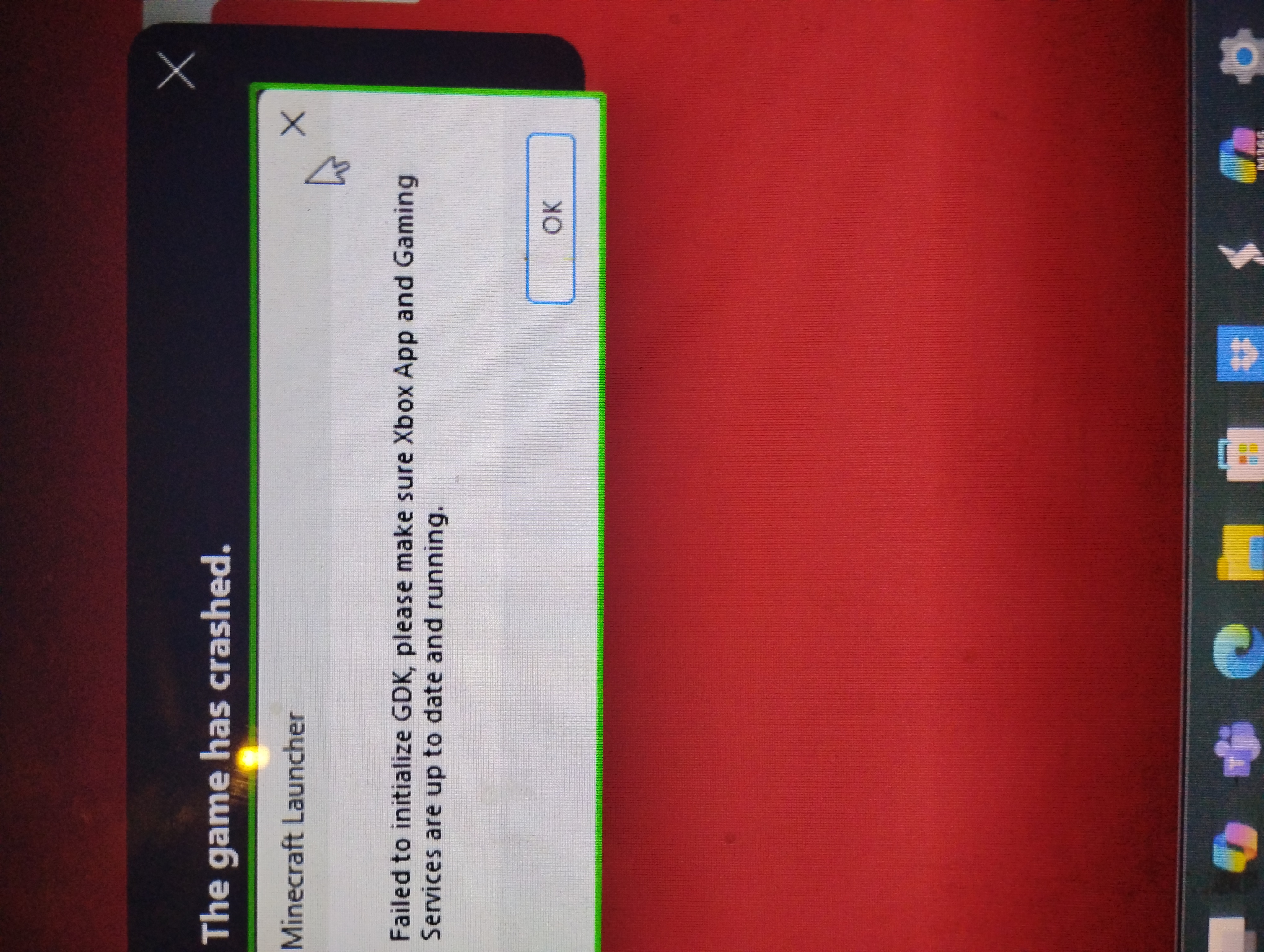 So I've had this bug once before it was fixed a month later but now I have it again and I've tried everything that Google and this site said to do, it still says error code 0x1 and I can't wait a month or even more plus it will not let me go to the Minecraft launcher and it says “failed to initialize GDK, please make sure Xbox app and gaming services are up to date" Ive done that and restarted those apps and it did nothing.