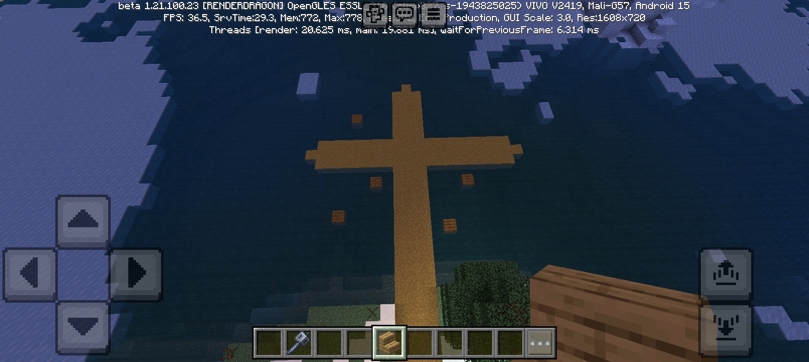 I found a cross-shaped village road bug in the water and I also found a pale oak tree with spruce leaves. The village road is at coordinates 149,80,-4 while the coordinates of the spruce tree are at coordinates 958,100,646