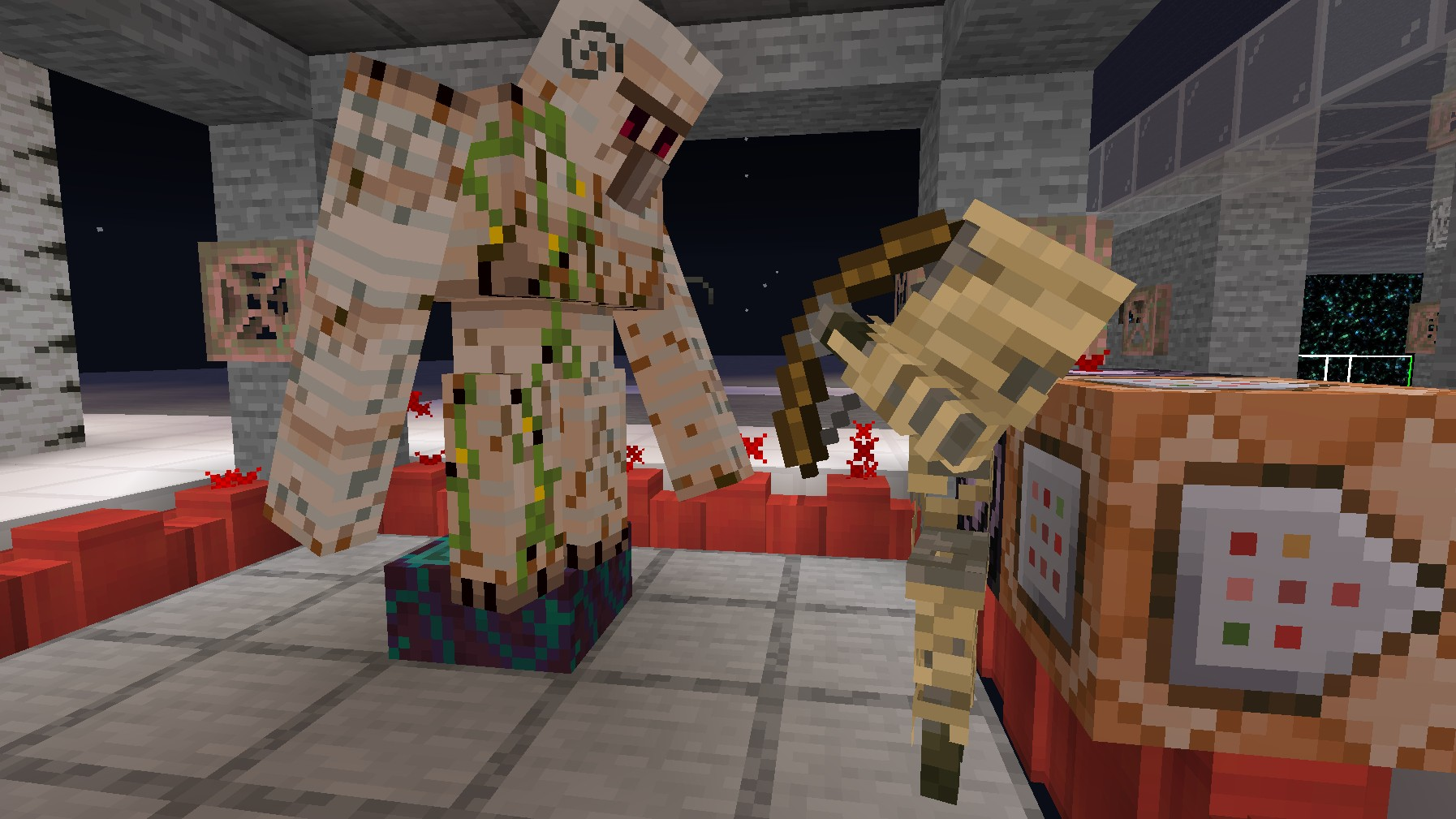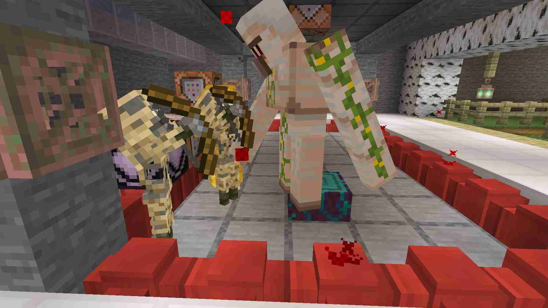 When an Iron Golem is standing on the height difference between a full block and a half slab, it cannot attack the Perched mob in front of it.