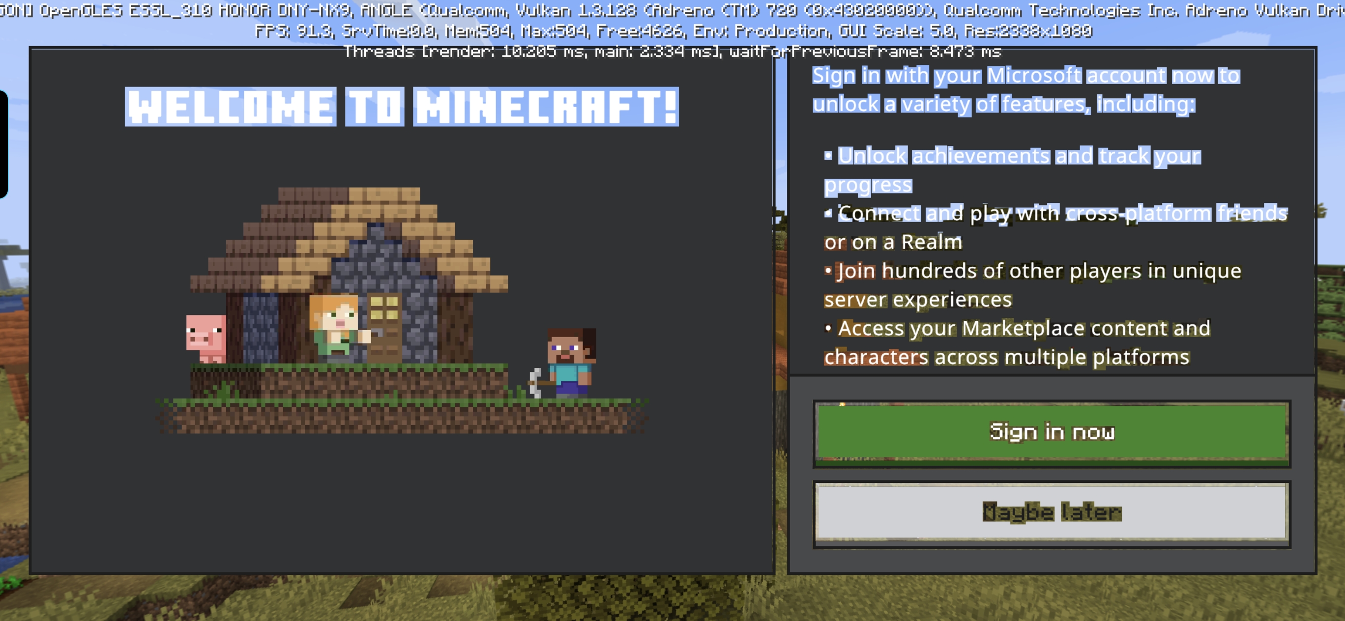 I installed Minecraft 26.1 on my honor 400, however, after installing it, all the background of the texts, some symbols, and icons are suddenly transparent or not appearing.