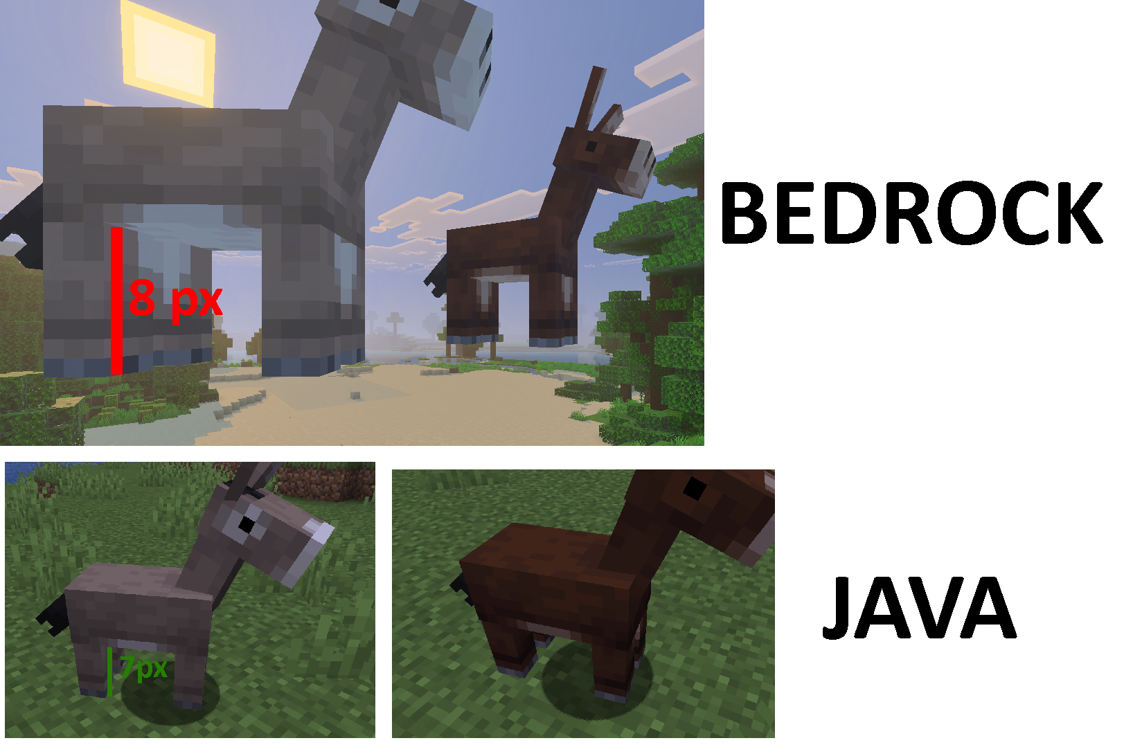 If you compare both edition, you see that java baby donkey/mule legs are 7px tall, however compared to Bedrock legs are 8px taller.