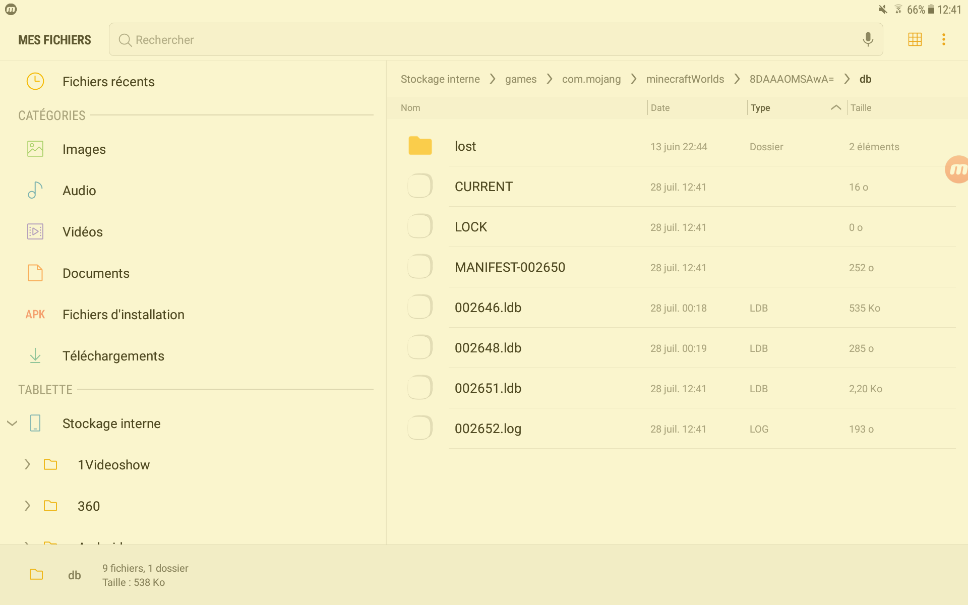 I am playing minecraft pe on tablet Samsung Galaxy tab A and I can't access one of my worlds , it's generating and suddenly the game crash . I found this file named "lost" (screenshot) and I attached a video of the crash