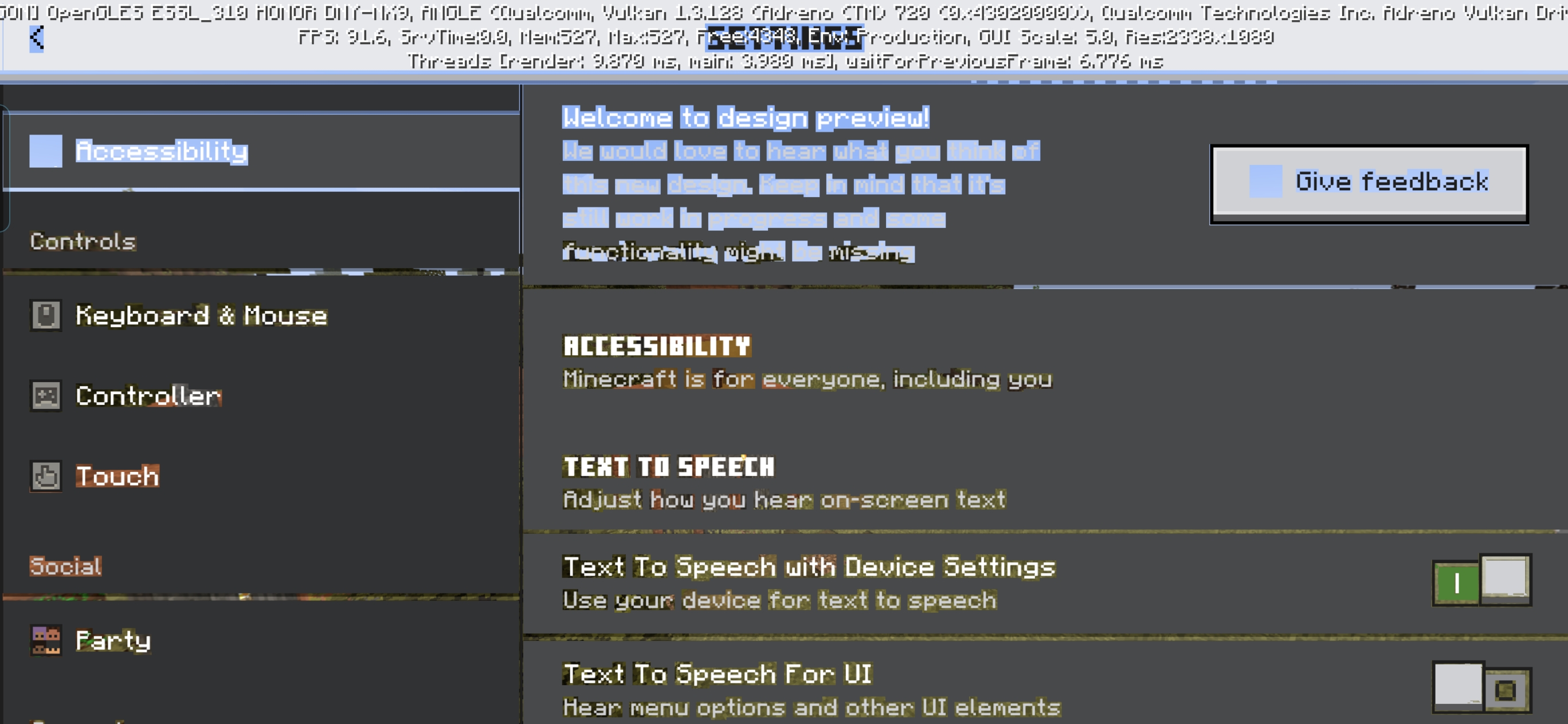 The text box on my screen is bugged. Also, the FPS counter at the top is showing up even though I didn't enable it, and I can't turn it off. I've tried everything to fix it, but nothing works.