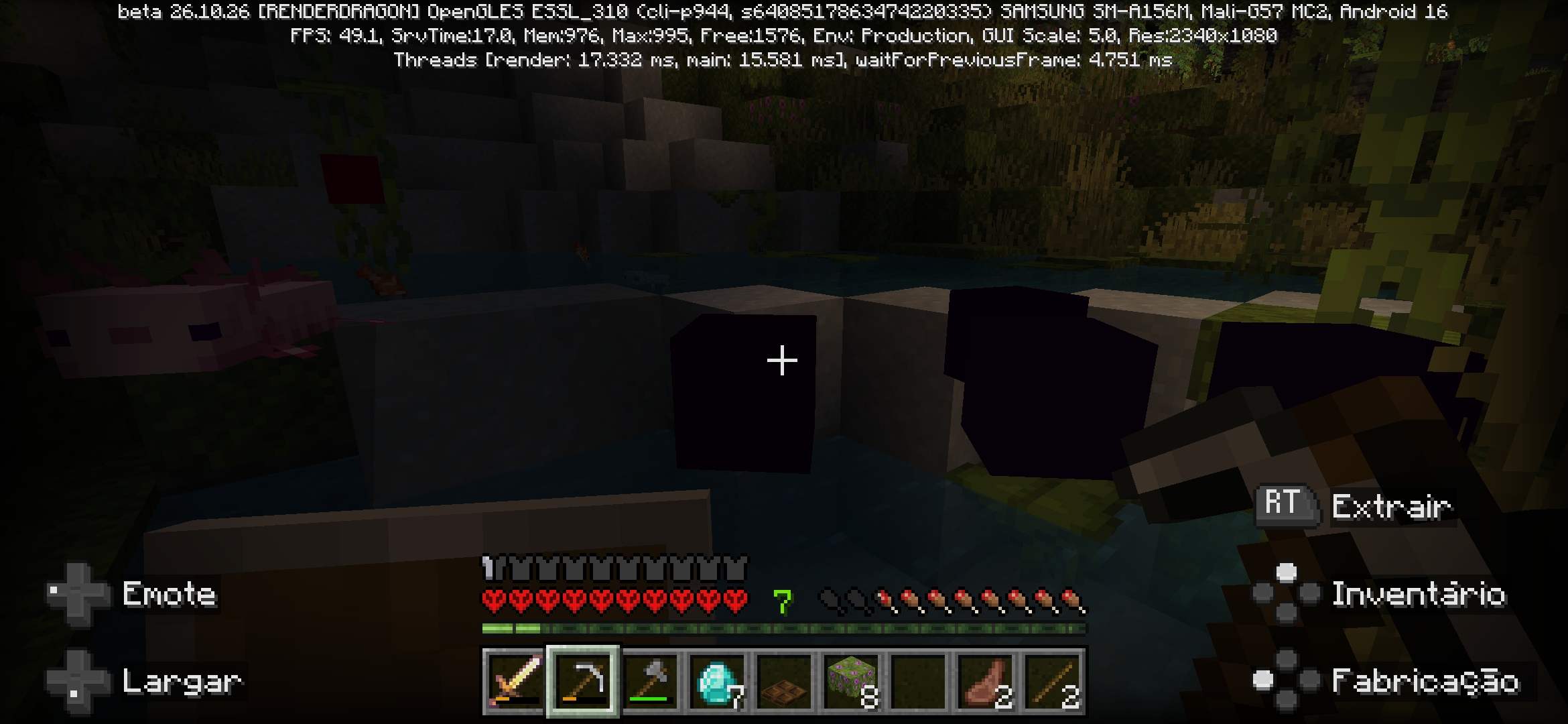 Enquanto jogava Minecraft com meu controle Bluetooth no modo hardcore eu percebi que esses mobs pretos que eu não sei identificar o mob