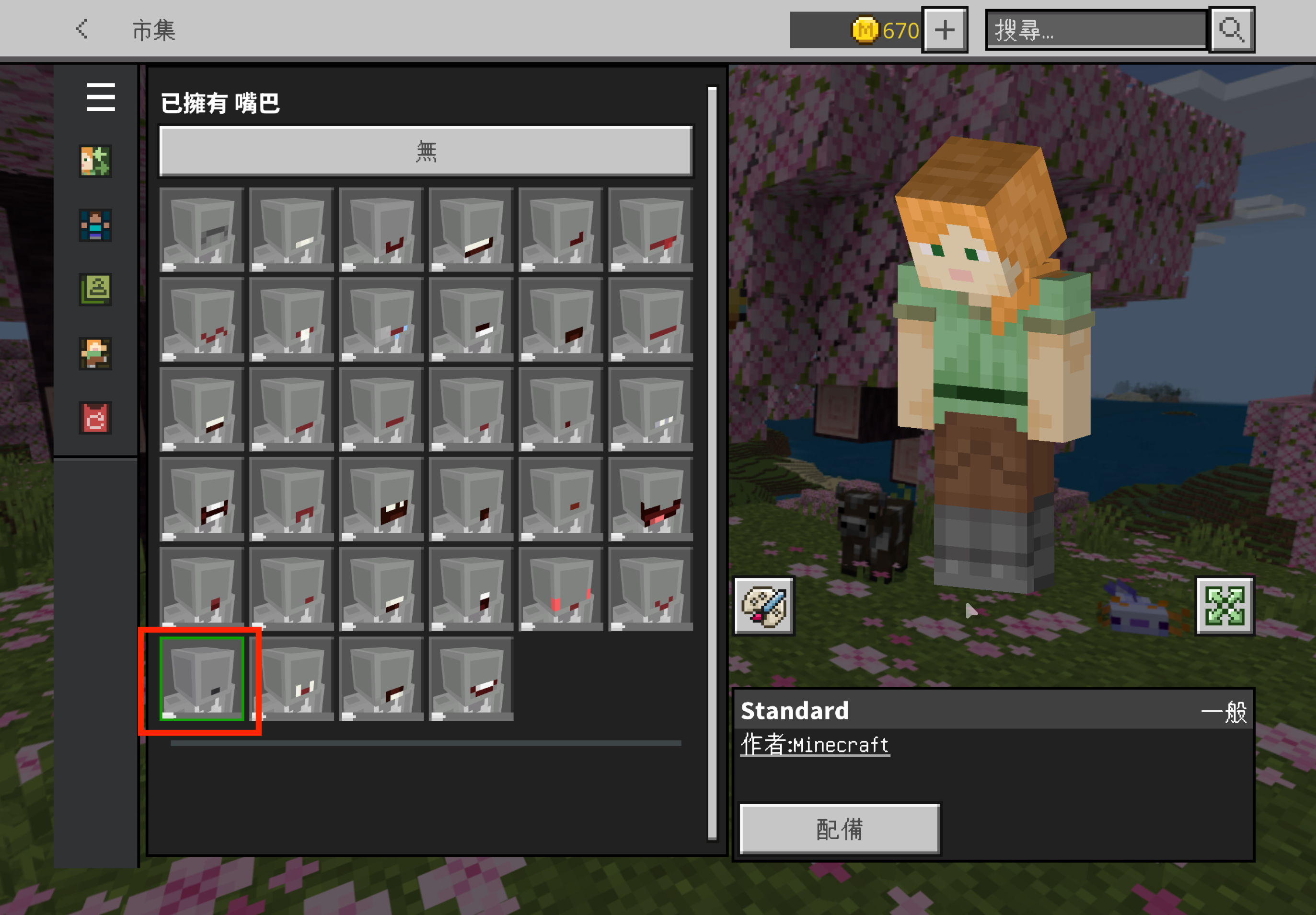 Note: There might be two Standard mouths (the one selectable by the player, and the one that is hidden (due to MCPE-165232?)), these might have different IDs and the hidden one is selected by presets (at step 4), I tried working around the issue by modding the game so it uses the player selectable version but then the character preset (from step 4) refuses to be loaded.