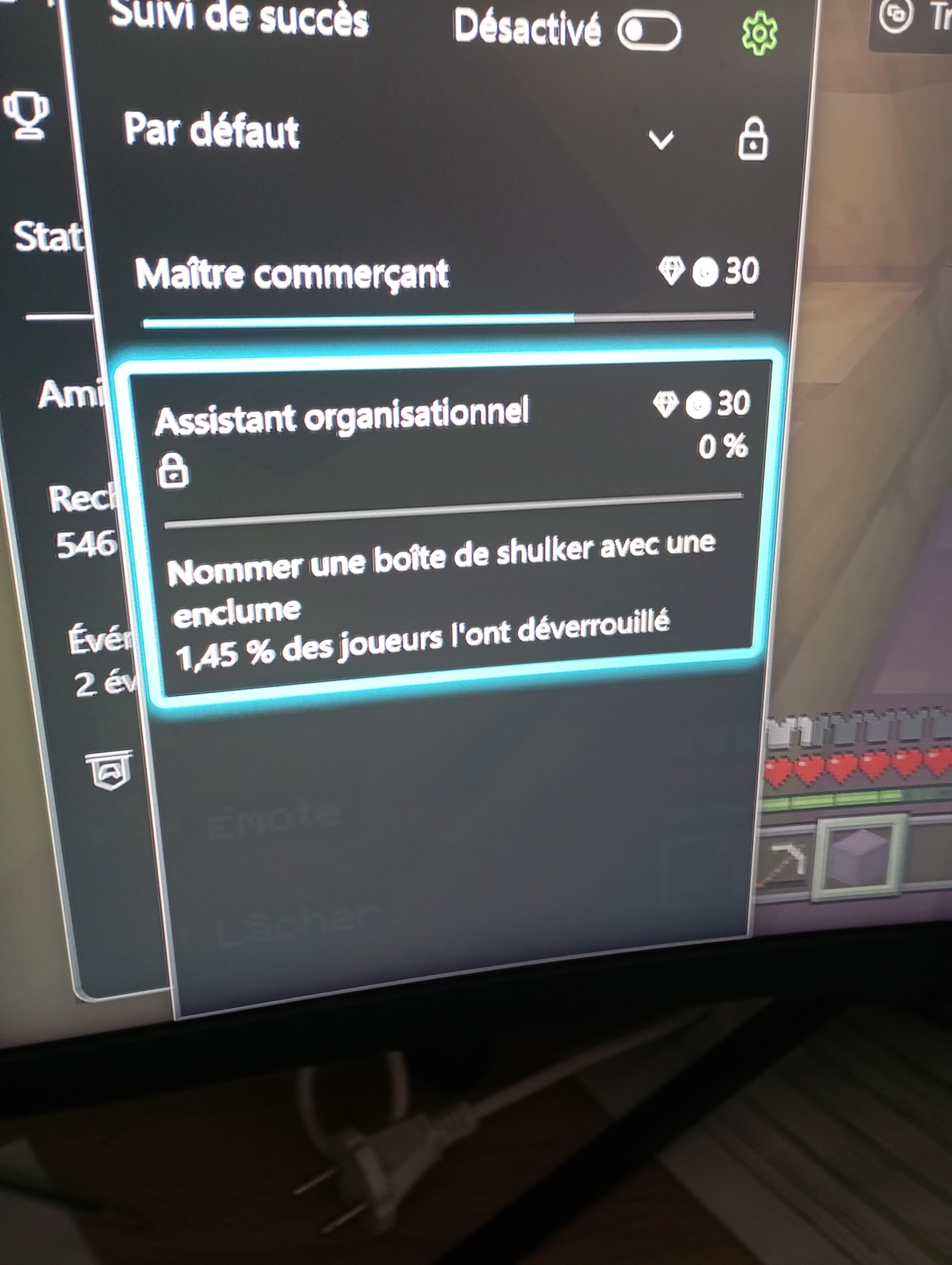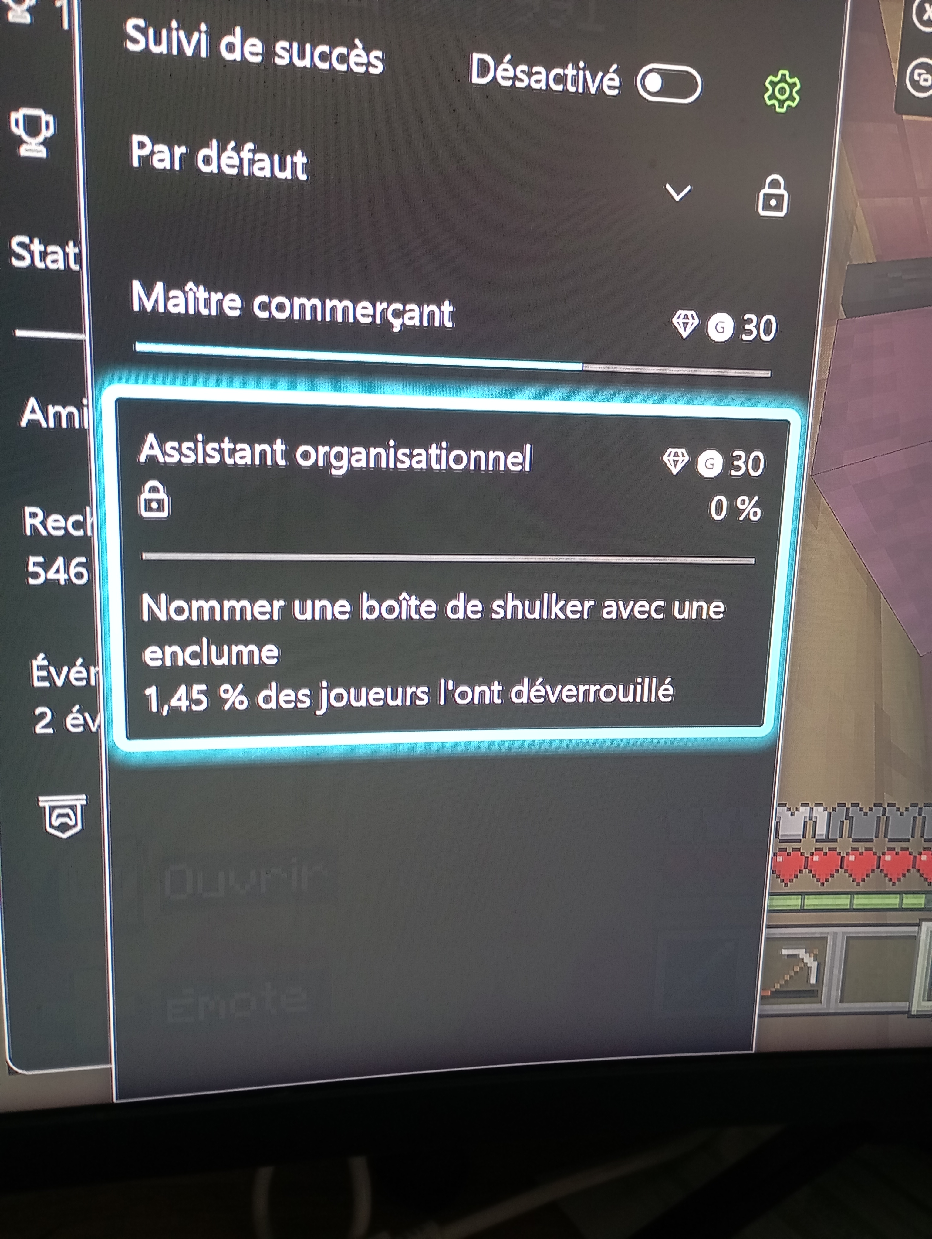 Le trophée assistant organisationnel est imbloquable pour ma part j'ai renommé 3 boîte de shulker dont une sur une autre partie. Je ne sais plus quoi faire :(