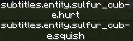 The closed captions for the new Sulfur Cube mob are not named/translated, leaving them listed in-game as the subtitle names themselves.