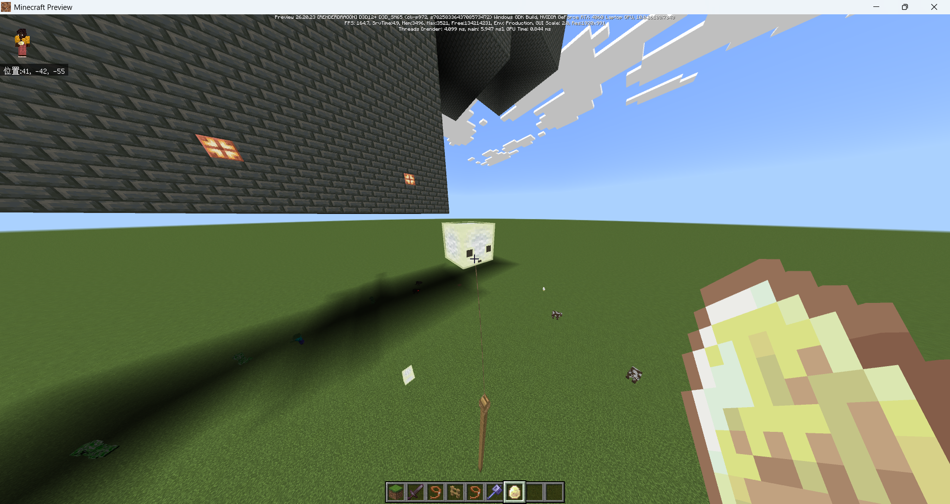 2. Attach the Sulfur Cube to a Fence using a Lead, ensuring it is suspended in the air away from the ground.