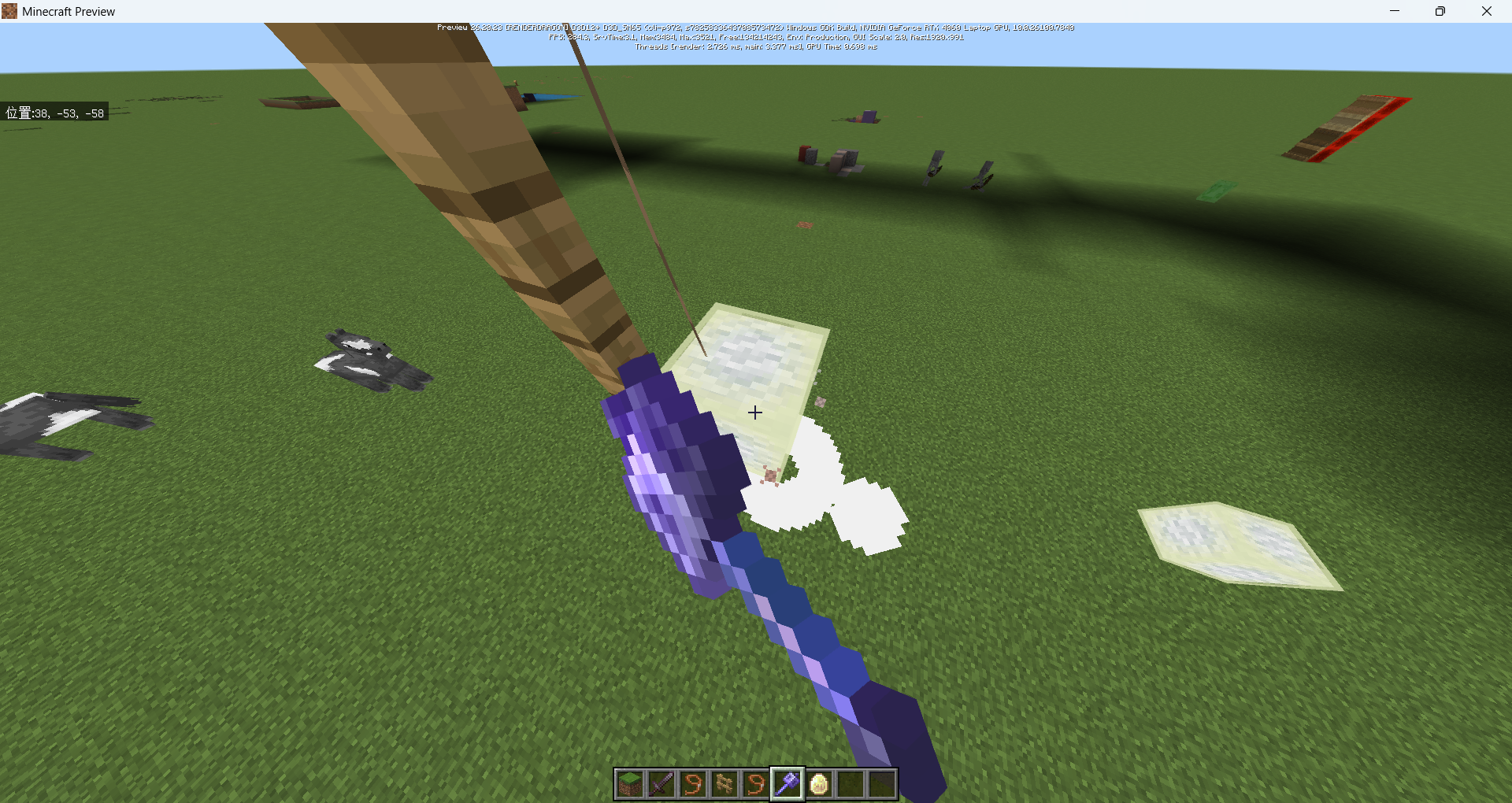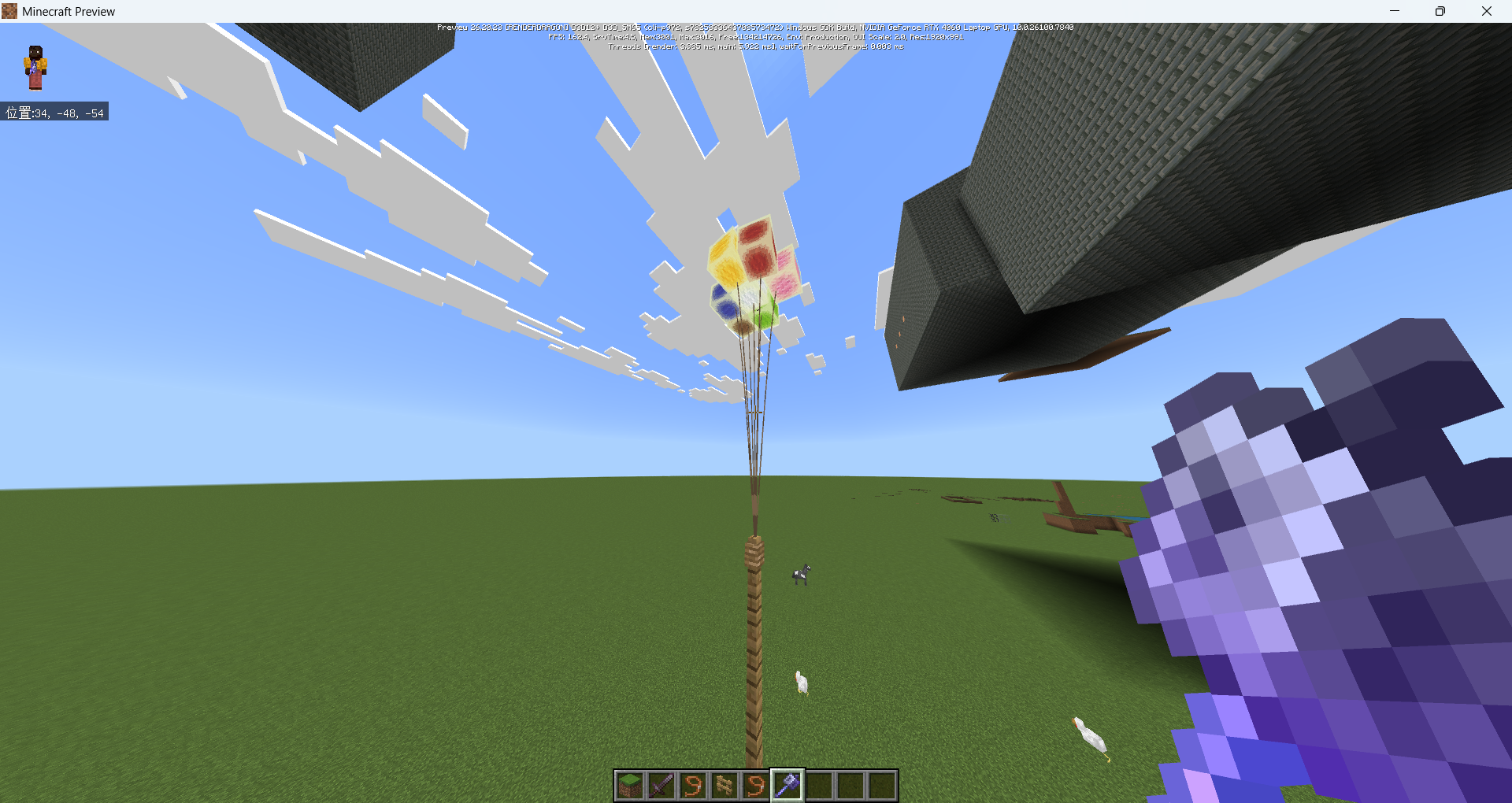 Description: A Sulfur Cube may lose gravity and become airborne after being repeatedly struck by a Mace enchanted with both Wind Burst and Density, following an interaction with a Wool block.