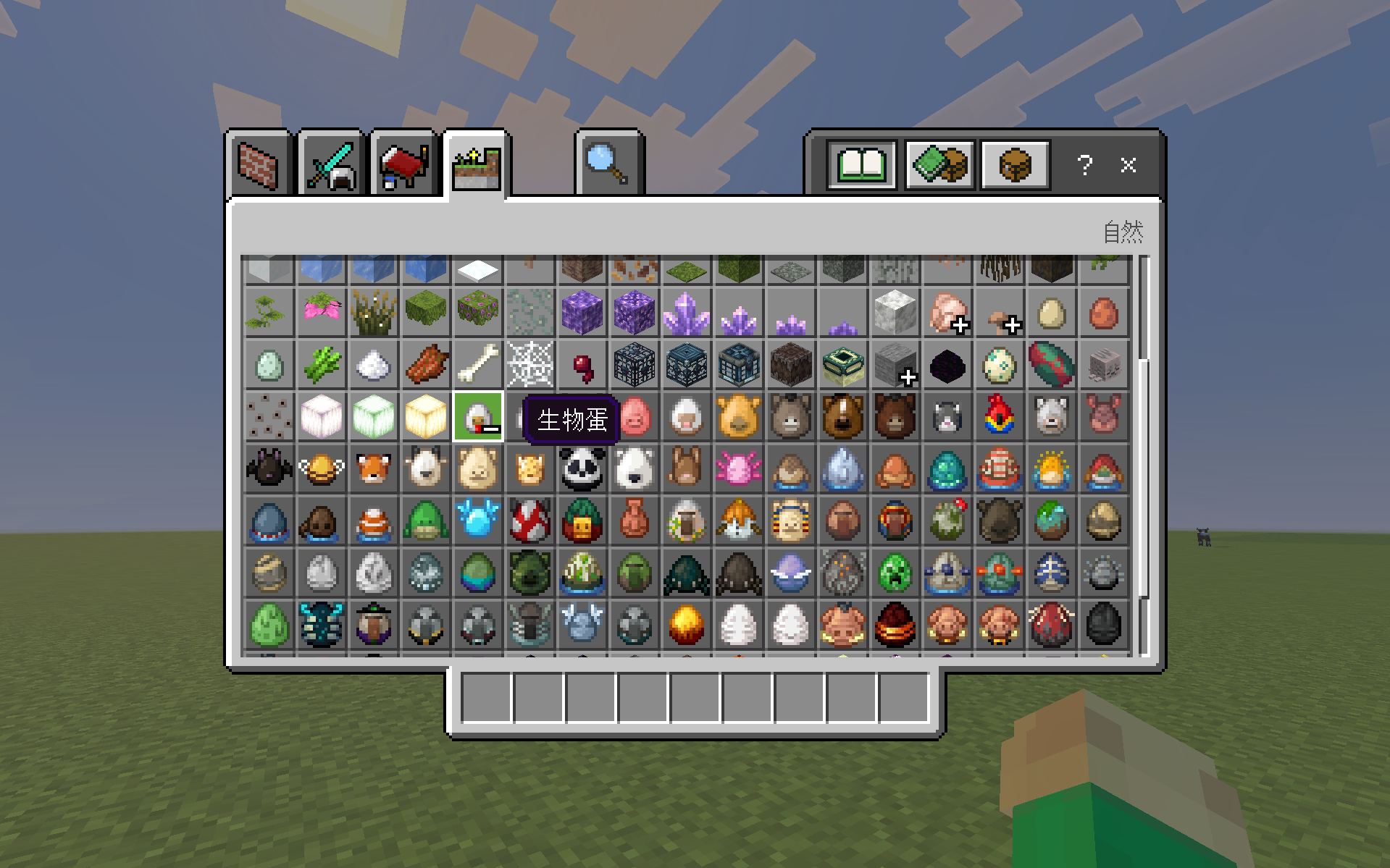 Attached to this report are two images: the first (300px-Creative_Inventory_JE_Simplified.png) shows the Creative mode inventory in the Java Edition, and the second (屏幕截图 2026-04-09 223544.png) is a screenshot I took whilst playing the Bedrock Edition, illustrating the texture of the spawn egg item group in the ‘Nature’ tab of the Creative mode inventory in the latest version (namely 26.13).