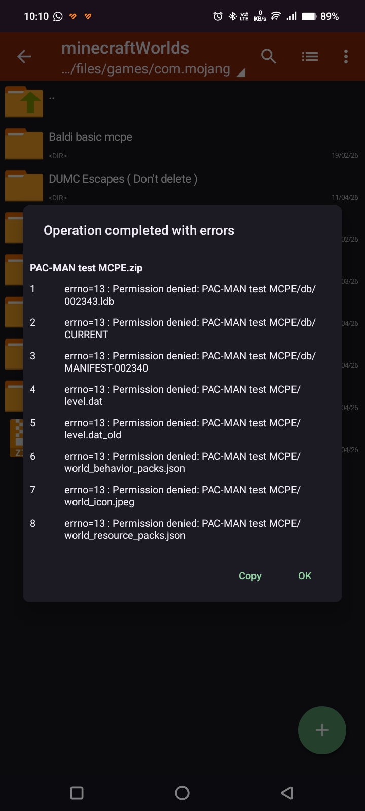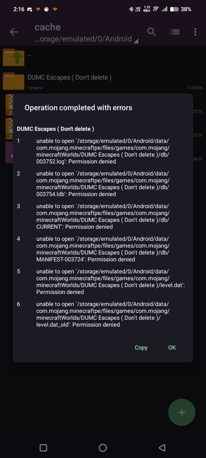 Hi mojang I have questions this because android 16 is blocking us to make mini game world how about you change like old time I know is hard but My work 8 year work is gone like nothing happen I open the file data using shizuku and I want copy my file to zip but I can't do that because when I copy the file all data going to 0kb like no data if I make new world in Minecraft and back to file is said โ access denied โ I mean WHAT? IS MY DATA WHY NEED ACCESS ? I try my best to backup my world but is gone idk how .. My last word Please Mojang do something my old work 1 by 1 is gone I don't want created new world because I scary is doing same like this How I supposed to share my data to other my new phone Huuuhhhuhu Please Do somethingโฆ Btw I hope you read this for you big fan mojang.