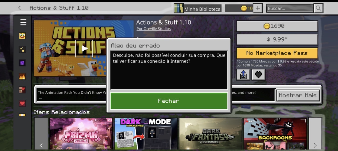 Eu estou tentando compra o pacote de textura de “actions & stuff” mais não estar funcionando, o dinheiro saiu da minha conta, mas não apareceu o pacote de “textura” pra mim.